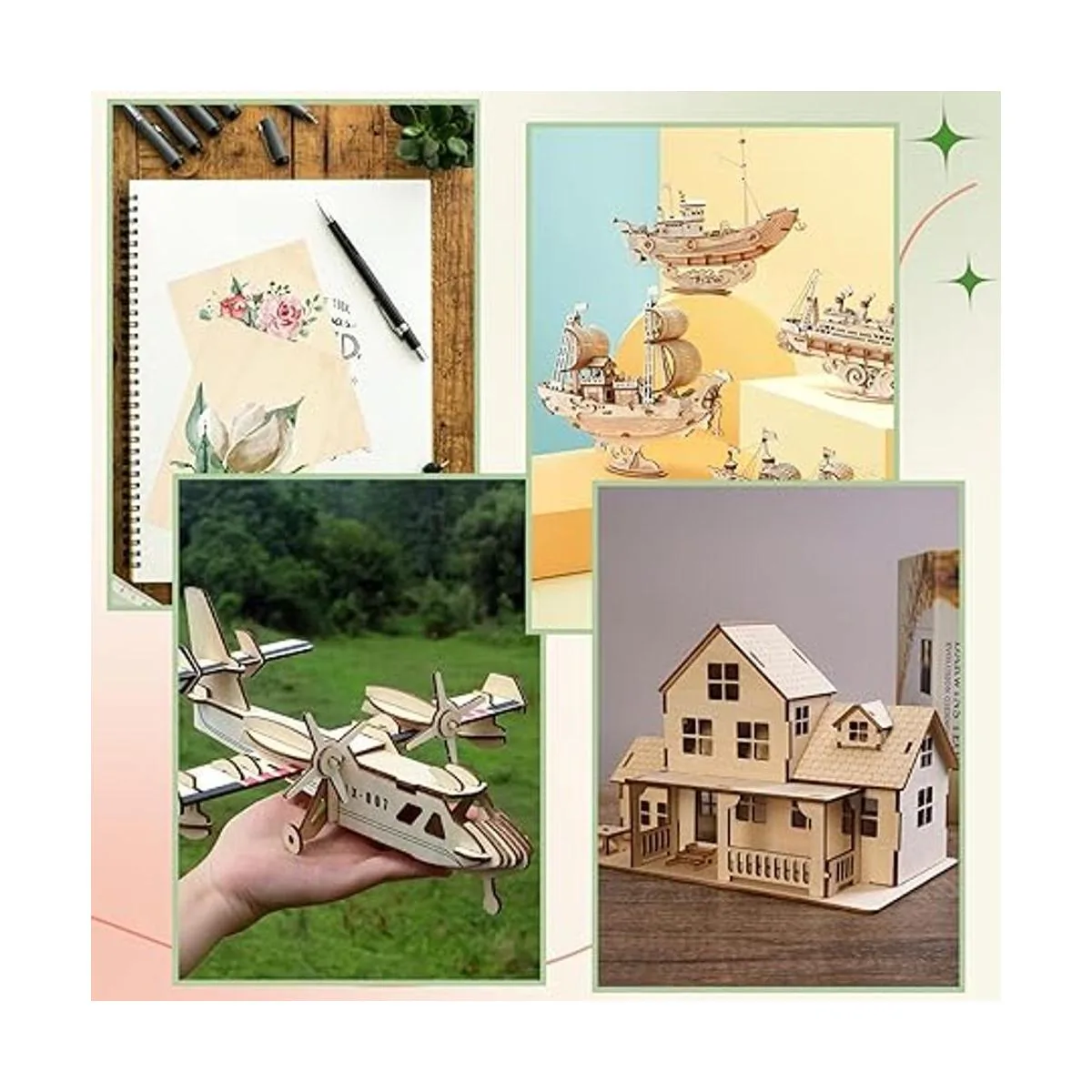 Las tablas de madera sin terminar se pueden utilizar para hacer modelos arquitectónicos de construcción de casas min, modelo de avión, crear puente de pagoda, ciencia, modelo militar, juguetes, vela de madera y proyectos de combustión de madera u otras manualidades. Perfecto para hacer a mano, carpintería, juguetes, artes y manualidades, proyectos escolares.