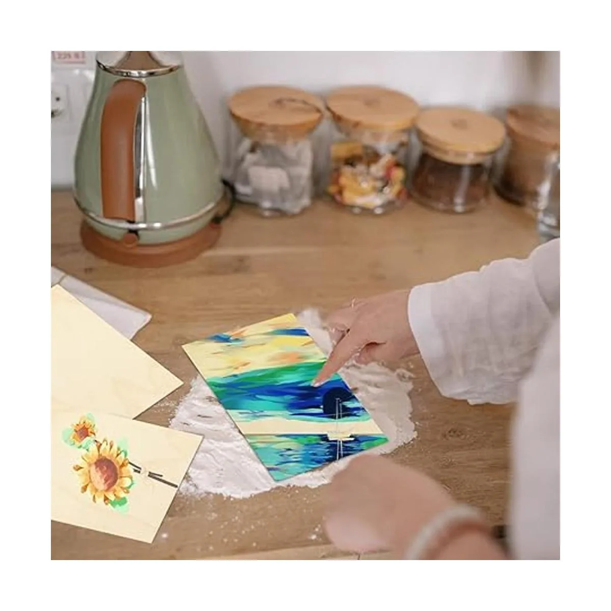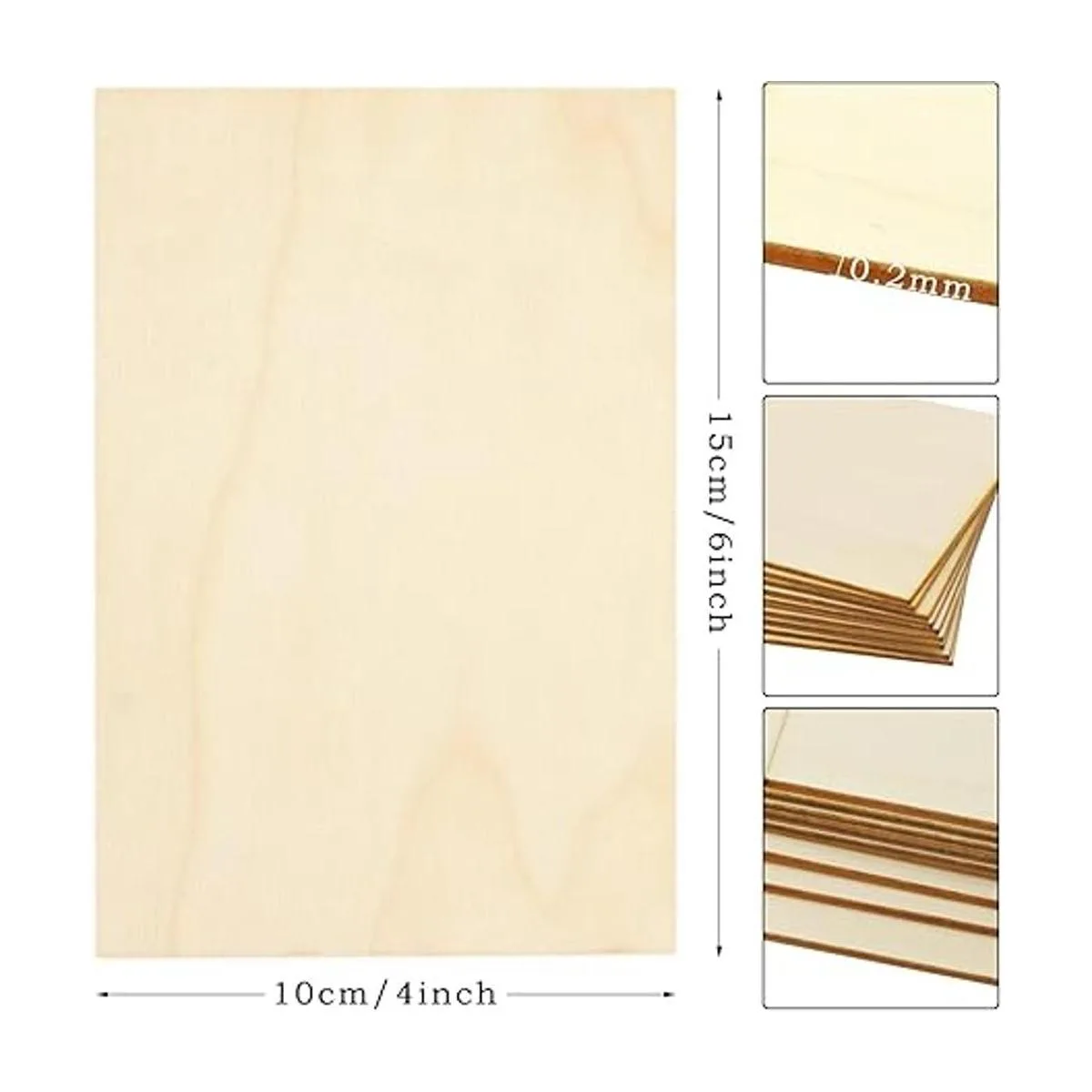 El paquete viene con 50 hojas de madera de tilo, suficiente para un uso independiente, fácil de cortar, bueno para ejercicios de pirografía, grandes artículos para bricolaje modelo de mesa de arena, materiales de construcción, manualidades decorativas.