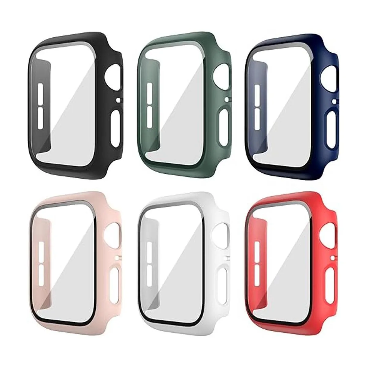 JZK Juego de 6 fundas rígidas compatibles con Apple Watch Series 8 Series 7 de 1.772 in con protector de pantalla de vidrio templado integrado, cobertura completa, sin burbujas, para iWatch Series 87 de 1.772 in