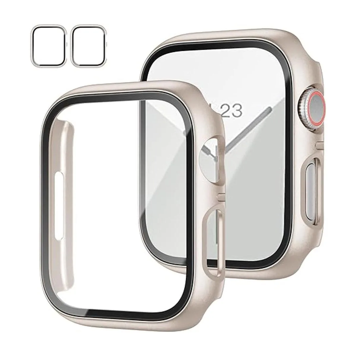 Diseño 2 en 1: funda de policarbonato duradera integrada en protector de pantalla de vidrio templado transparente HD, protege tu Apple Watch de 1.654 in de arañazos, golpes y caídas accidentales. Muy fácil de instalar por su diseño a presión y carga directamente.