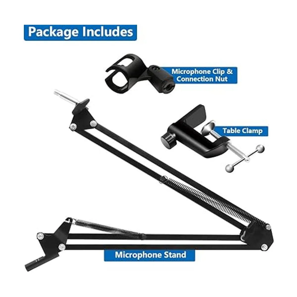Soporte de micrófono resistente: los brazos de doble refuerzo añaden fuerza para soportar mucho más peso, el resorte extra fuerte evita que el micrófono se caiga accidentalmente, generación de ruido y agitación. Tiene una abrazadera de montaje de mesa y capas protectoras de esponja. Mejora la carga que otros soportes de micrófono baratos y lo hace lo suficientemente fuerte como para soportar micrófonos pesados.