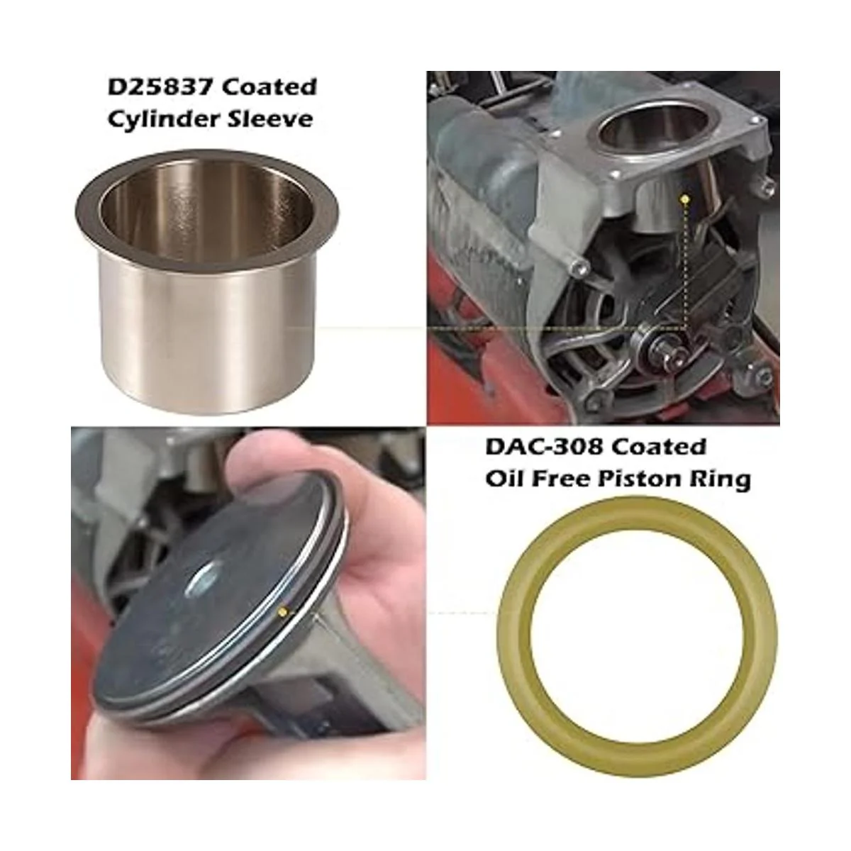 El paquete incluye: este kit de anillo de compresión contiene 5 piezas: 1 funda de cilindro recubierto D25837, 1 anillo de pistón recubierto sin aceite DAC308, 1 tornillo de tapa de pistón SSF31581, 1 placa de válvula SSG8156 a junta tórica de manguito, 1 cabezal de cilindro ACG45 a junta tórica de válvula de válvula de válvula.
