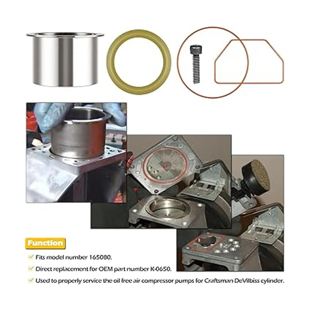 K0650 Compresor de Aire Cilindro Manga y Anillo de Compresión Kit de Reemplazo Perfectamente Se adapta para Craftsman DeVilbiss Porter Cable Compresor de Aire Cilindro