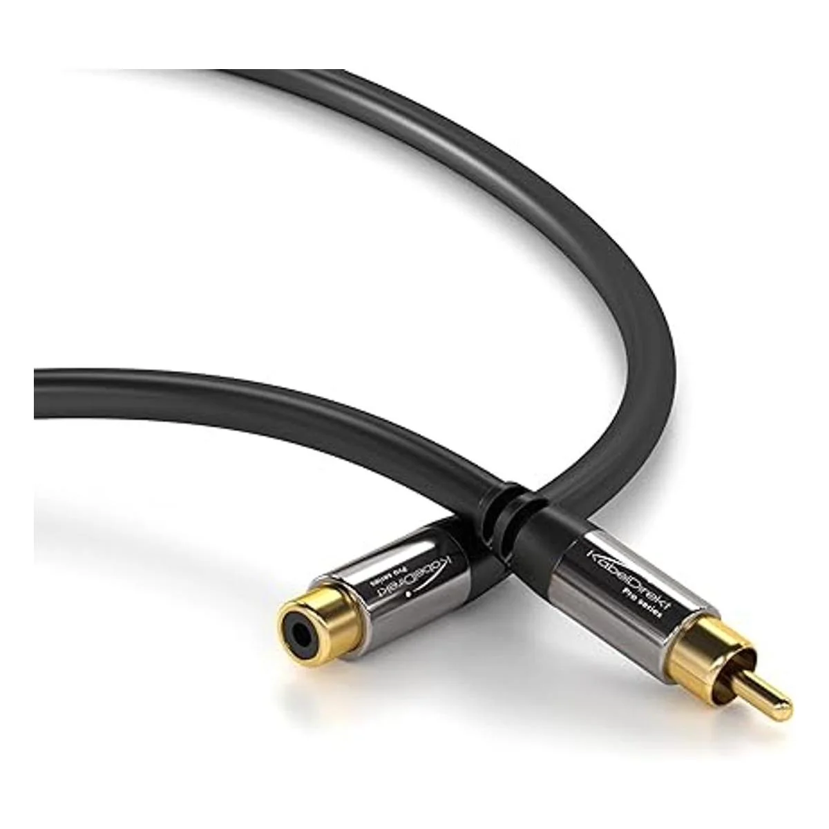 KabelDirekt Cable de extensión RCAPhono de 15 pies de largo, audiodigitalvideo cable coaxial, RCAPhono macho a hembra, para subsamperiosHiFis, audio analógicodigital o video compuesto, 75 ohmios, negro