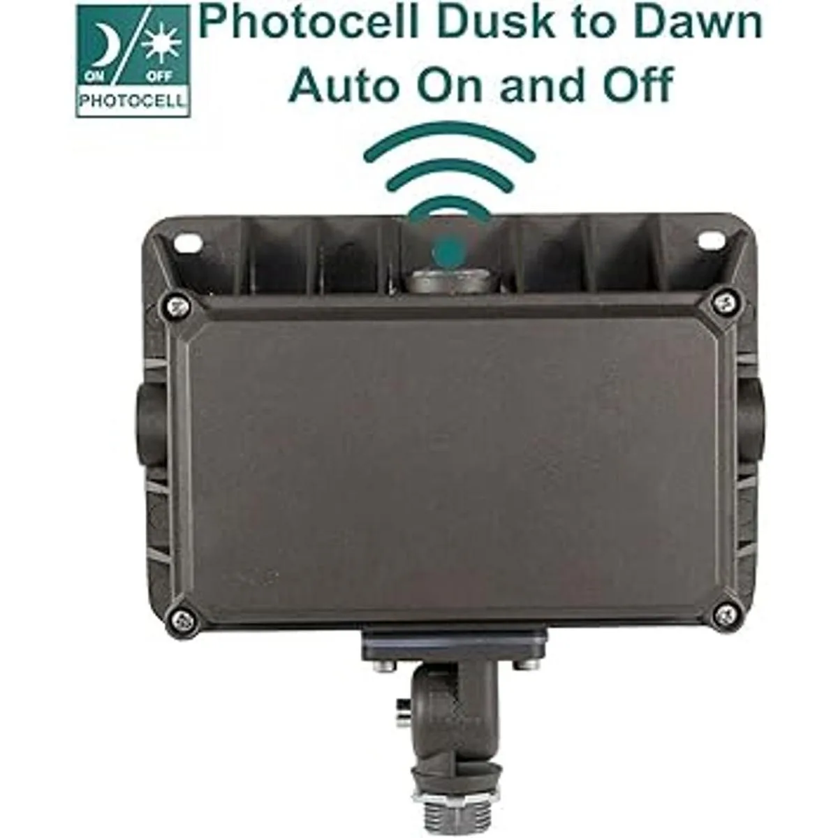 Encendido y apagado automático de la fotocélula del atardecer al amanecer enciende automáticamente la luz de inundación exterior cuando está oscuro fuera y se apaga cuando el sol se levanta. Esta función te ahorra energía y el problema de controlar la luz manualmente.