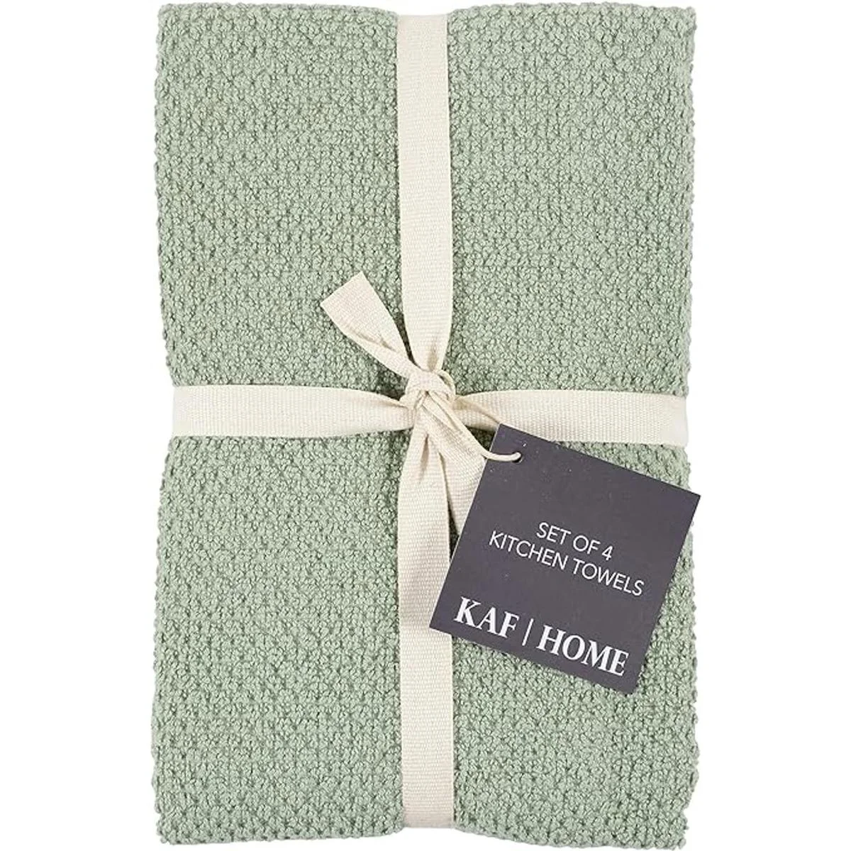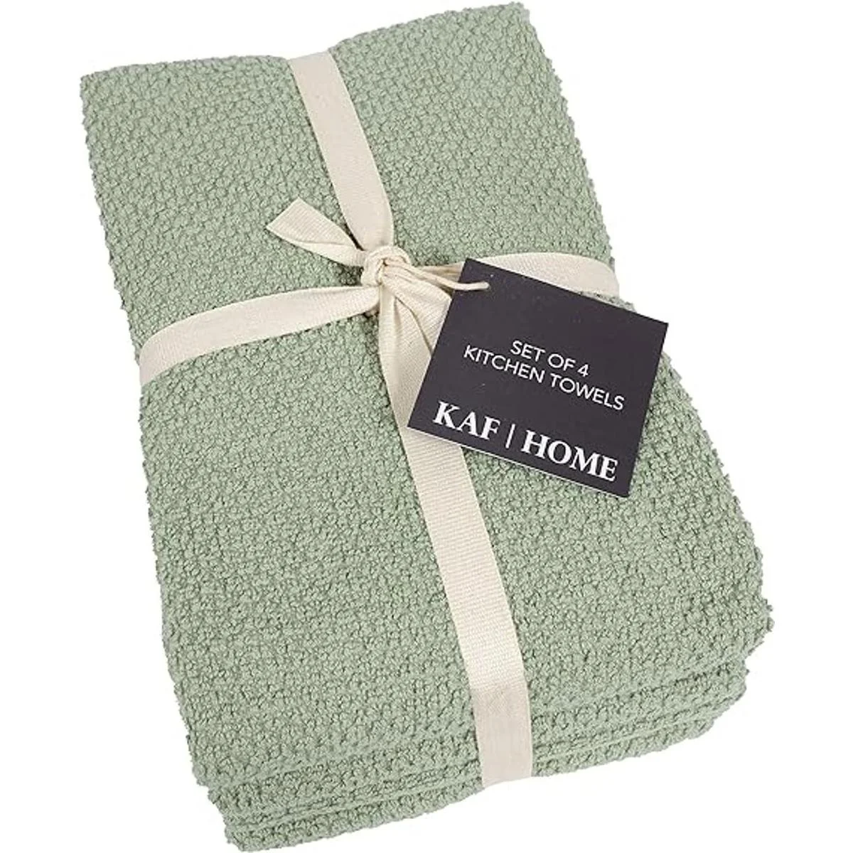 KAF Home Juego de 4 toallas de cocina de rizo de palomitas de maíz, 20 x 30 pulgadas, toallas de cocina 100 algodón verde francés