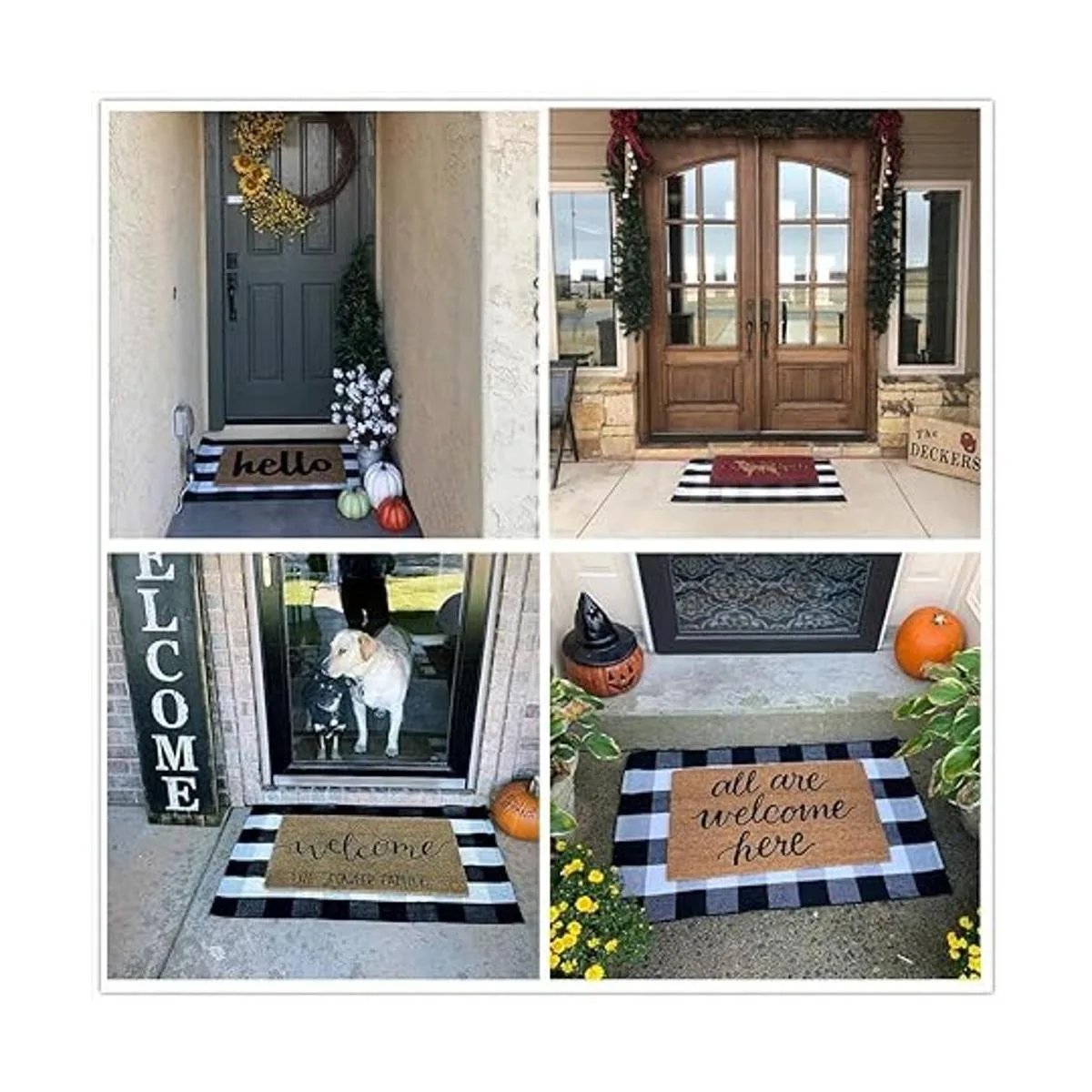 KaHouen Alfombra de algodón a cuadros de búfalo de 27.5 x 43 pulgadas, alfombra a cuadros lavable, tejida a mano para exteriores en capas, cocina, granja tapete de decoración de porche navideño