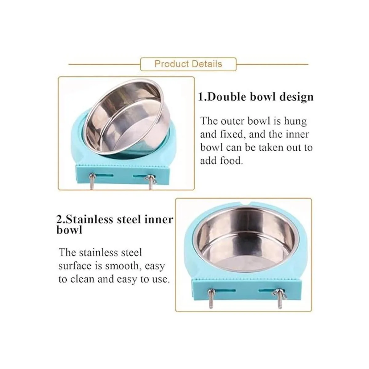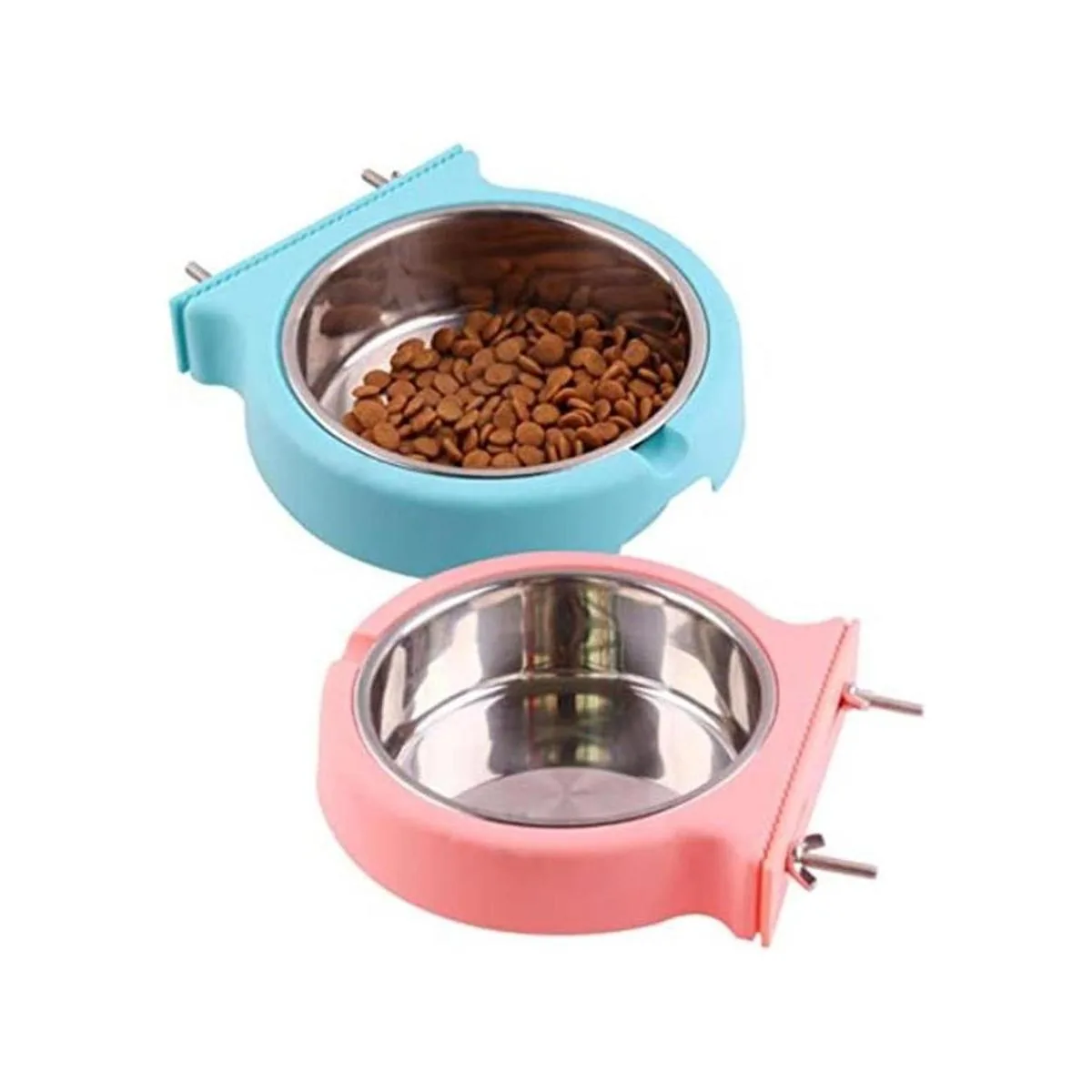 Kahson Cuenco para perro con caja de acero inoxidable extraíble para alimentos y agua, para colgar en jaula, para cachorros, gatos, pájaros, conejos 2 unidades