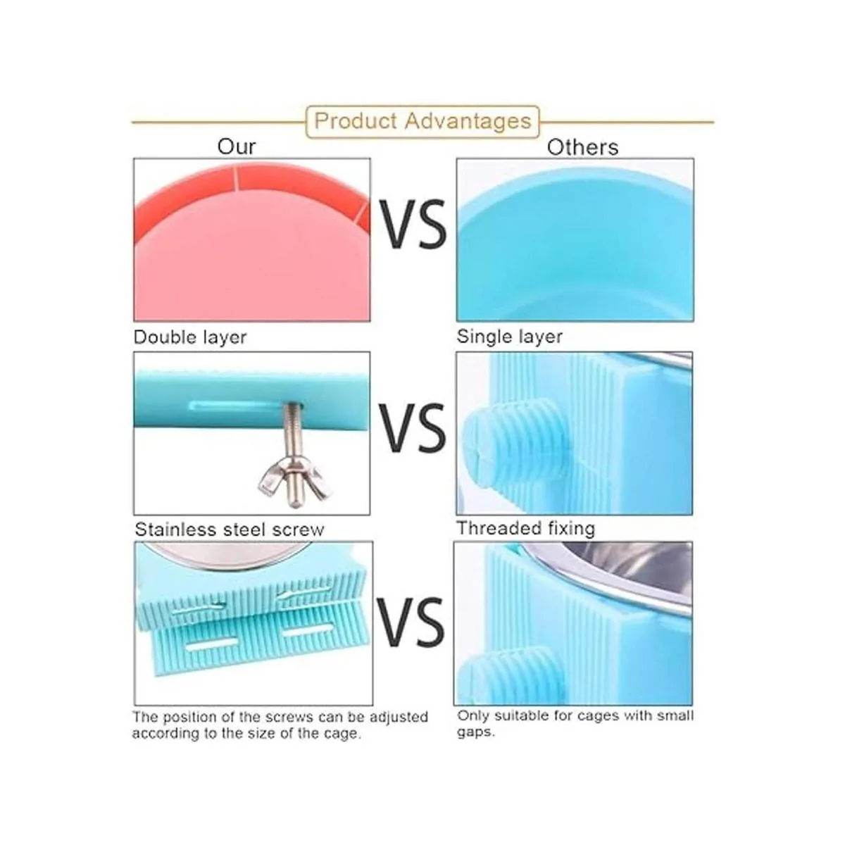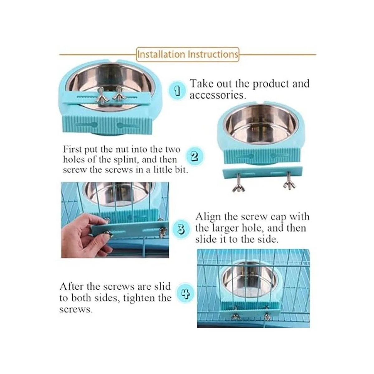 El cuenco colgante de acero inoxidable para comida y agua para perros y gatos es extraíble para una fácil limpieza, llenado o extracción. Puedes hacer que el arco de plástico se fije a la jaula y simplemente retira el cuenco de acero inoxidable para limpiarlo, llenarlo.