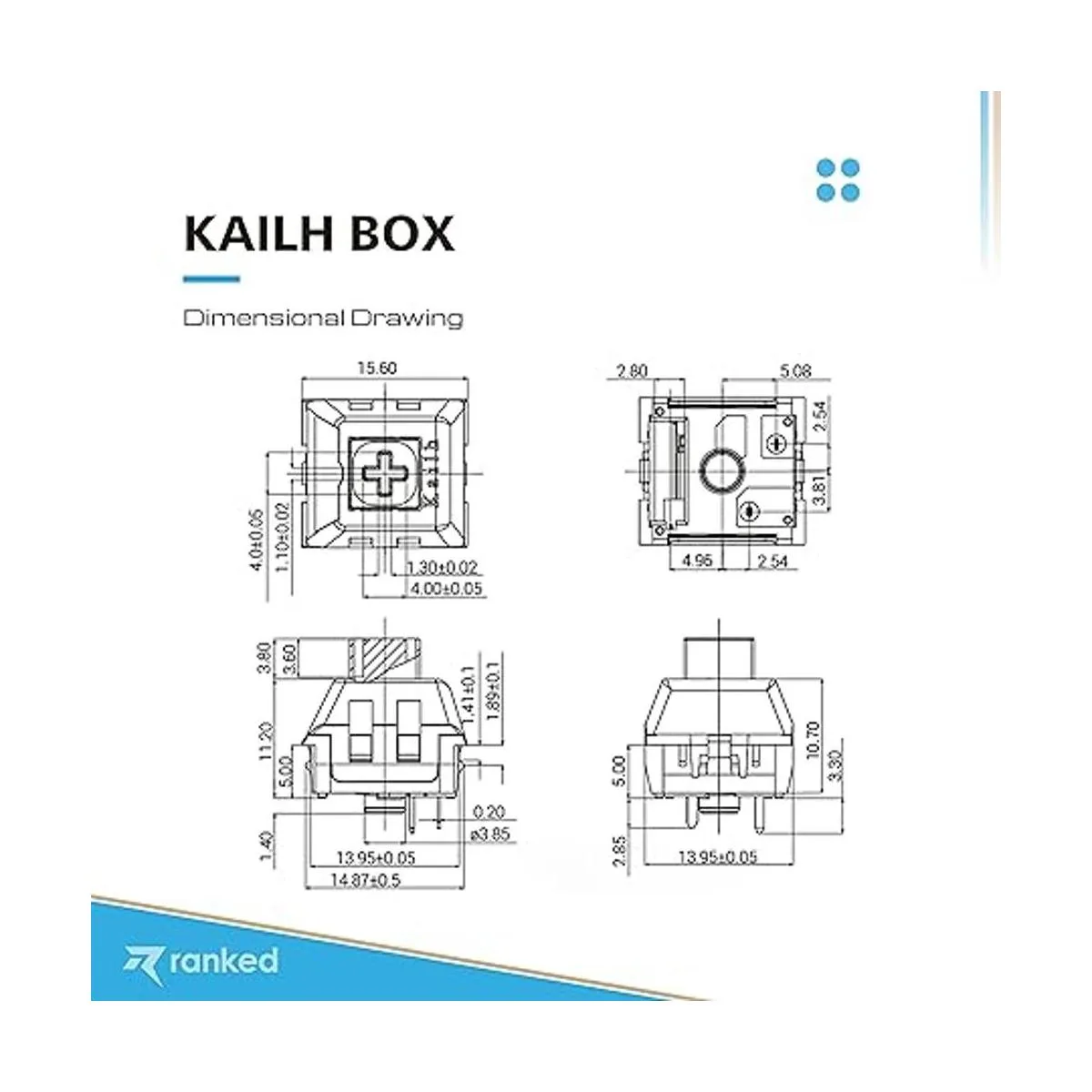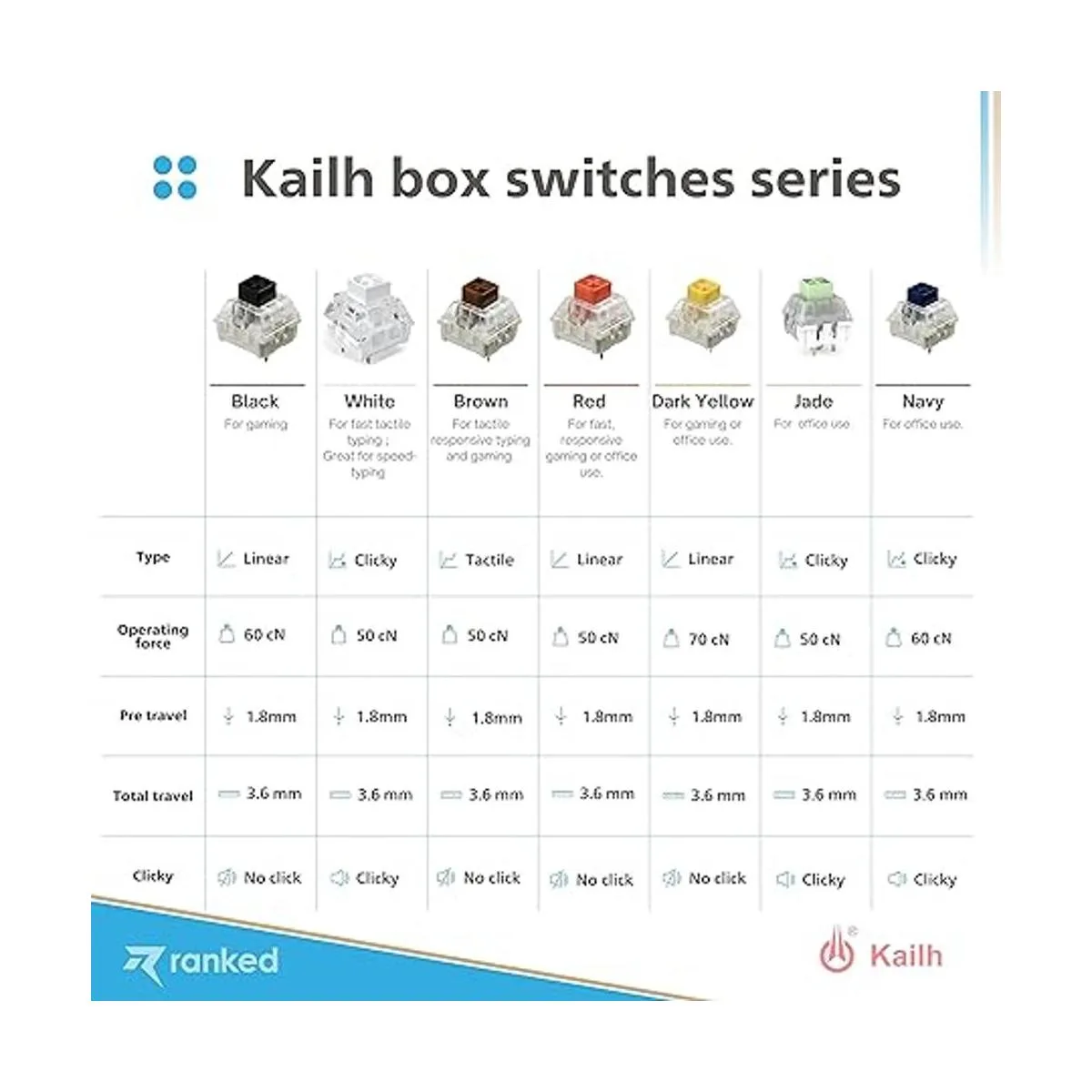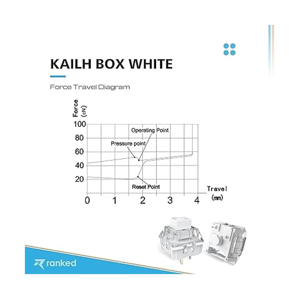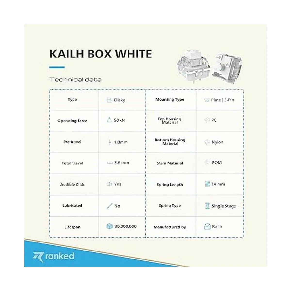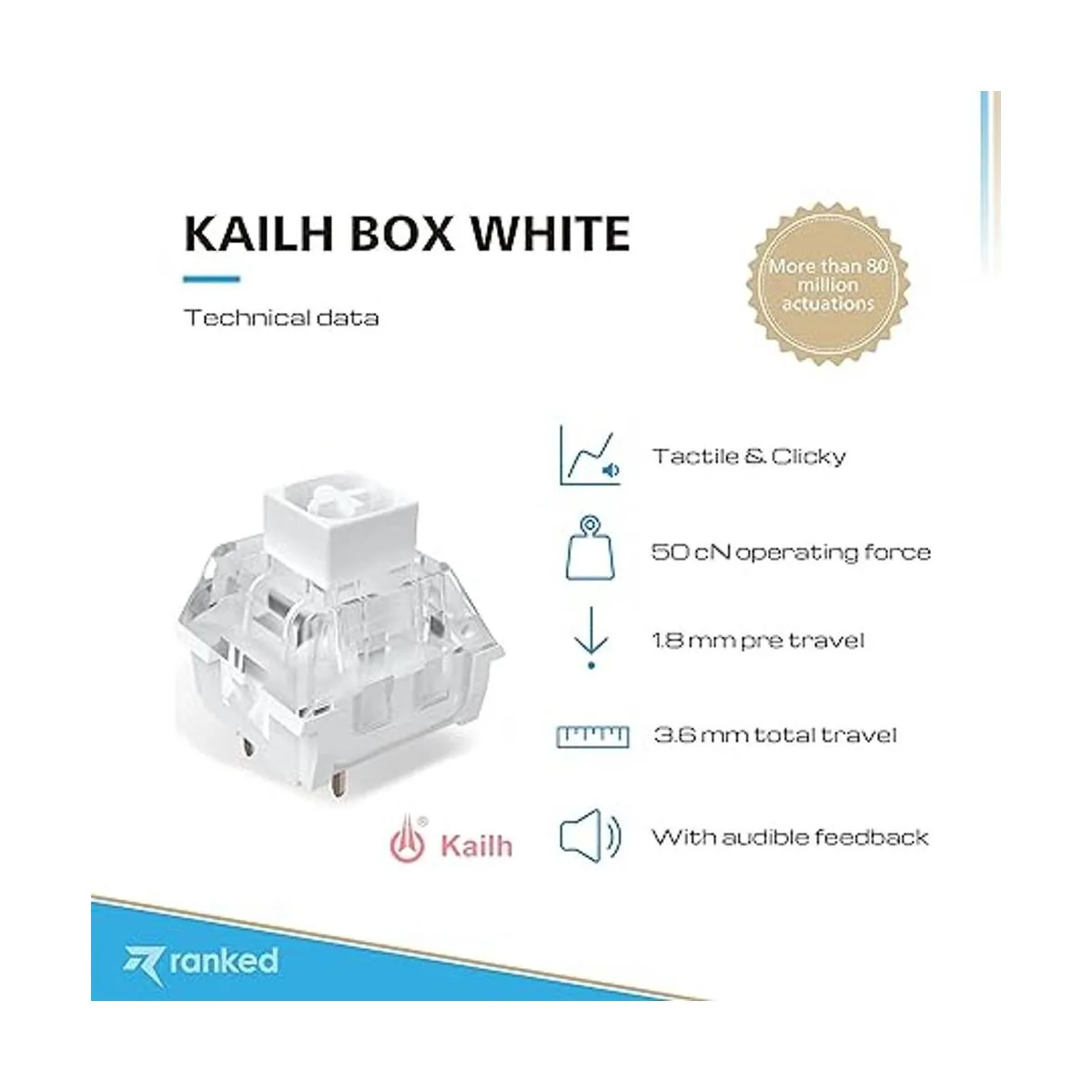 Kailh Box Interruptores de llave para teclados mecánicos para juegos Montaje en placa caja Kailh blanca, 65 piezas
