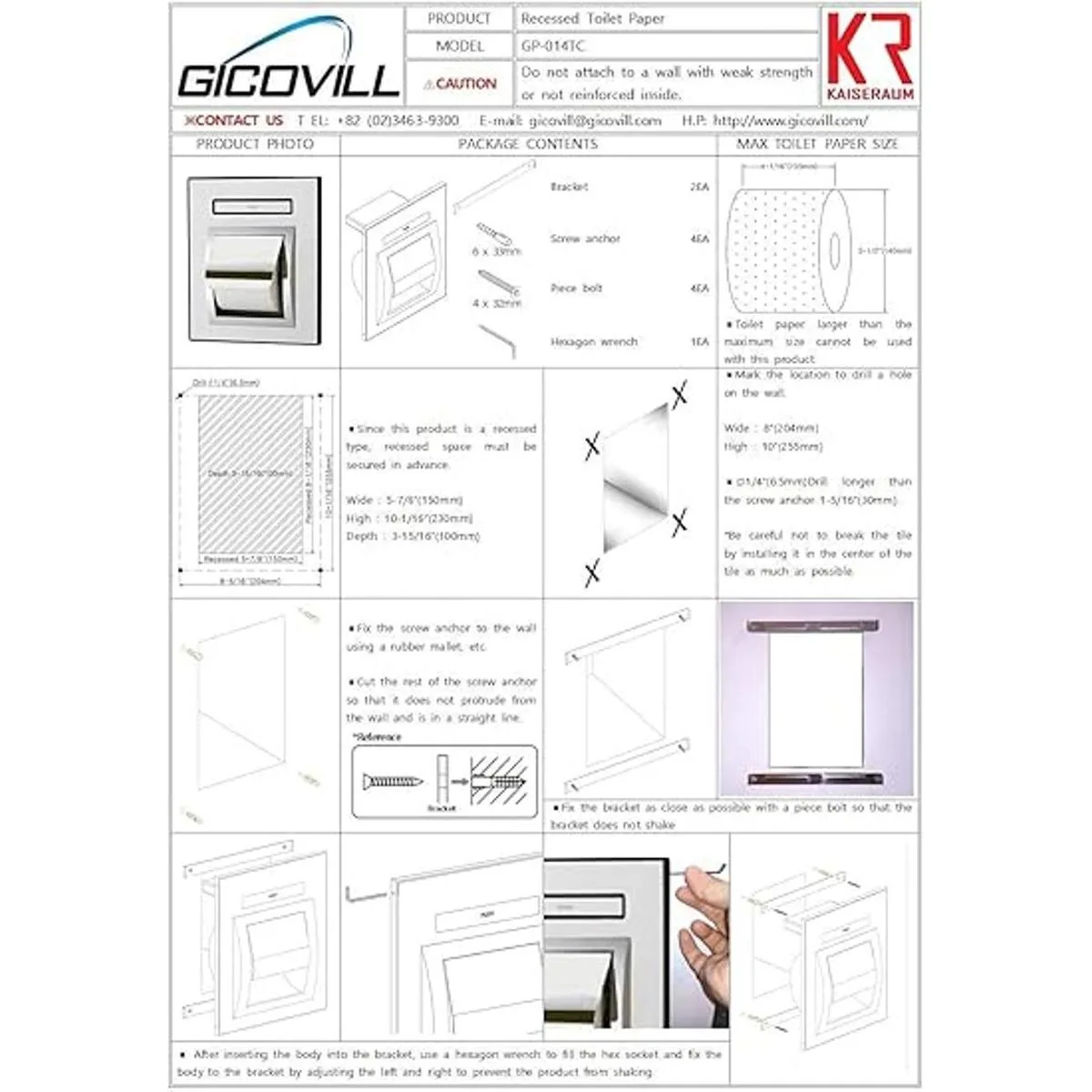 Alta utilidad En el pasado la gente a menudo leía revistas o libros mientras usas el baño, pero ahora el smartphone es un artículo obligatorio para la vida moderna de la gente, incluso en el baño. GICOVILLs KAISERAUM GP014TC tiene bandeja para teléfono celular y su instalación empotrada puede hacer que tu baño sea más limpio y eficiente.