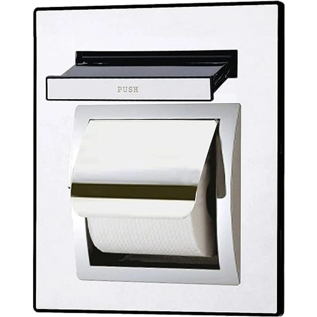 KAISERAUM Soporte de papel higiénico empotrable con estante emergente, soporte para rollo de papel de seda con bandeja anticaídas, acero inoxidable SUS304, cromado, GP014TC, tamaño máximo del rollo de papel higiénico 4.13 x 5.5 pulgadas