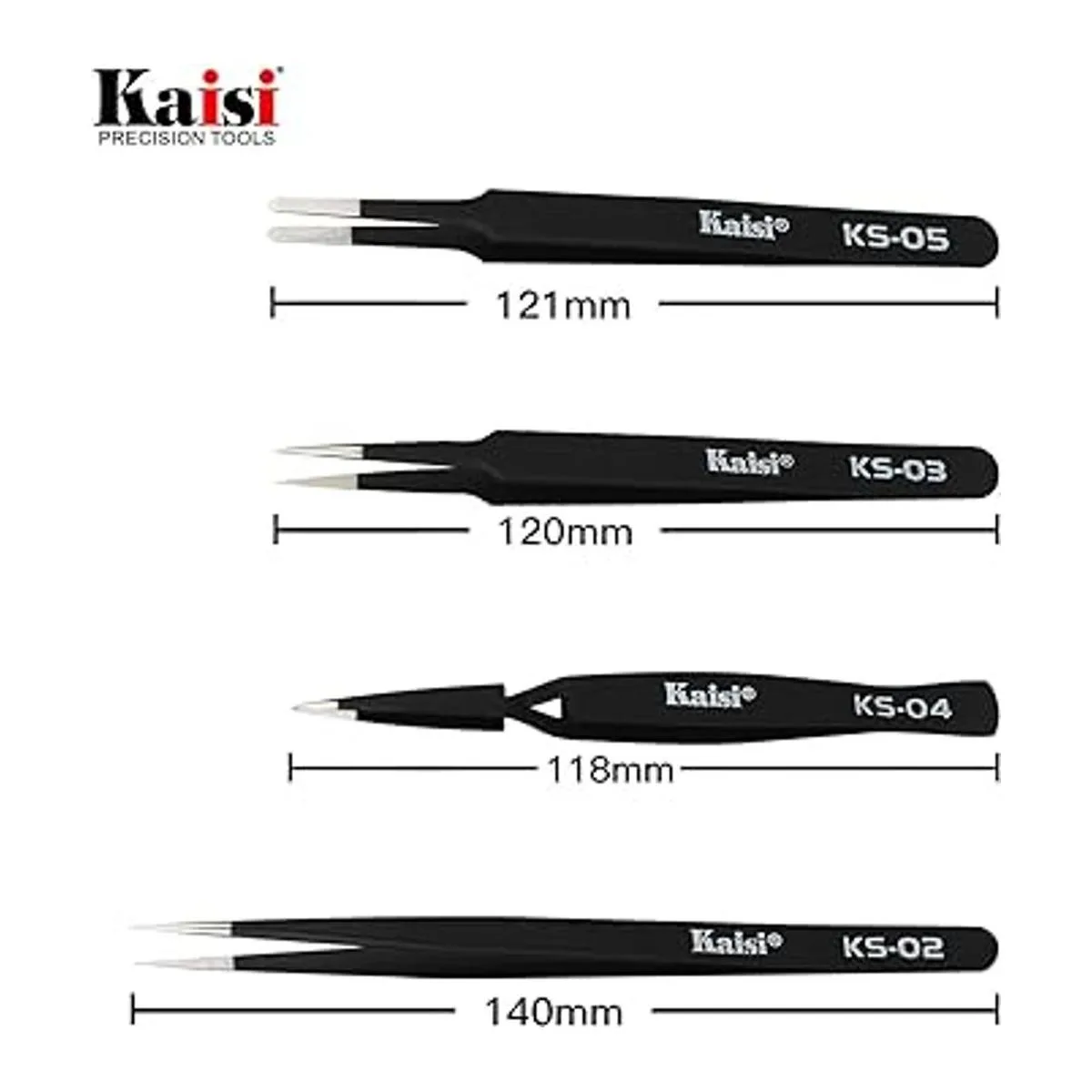 Kaisi Juego de 10 pinzas ESD, kit de pinzas antiestáticas de acero inoxidable para manualidades, joyas, electrónica, trabajo de laboratorio
