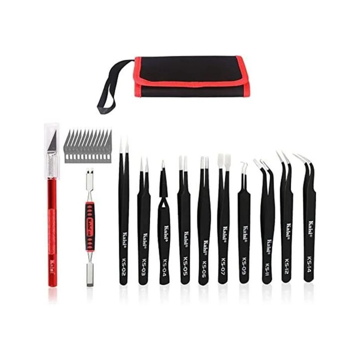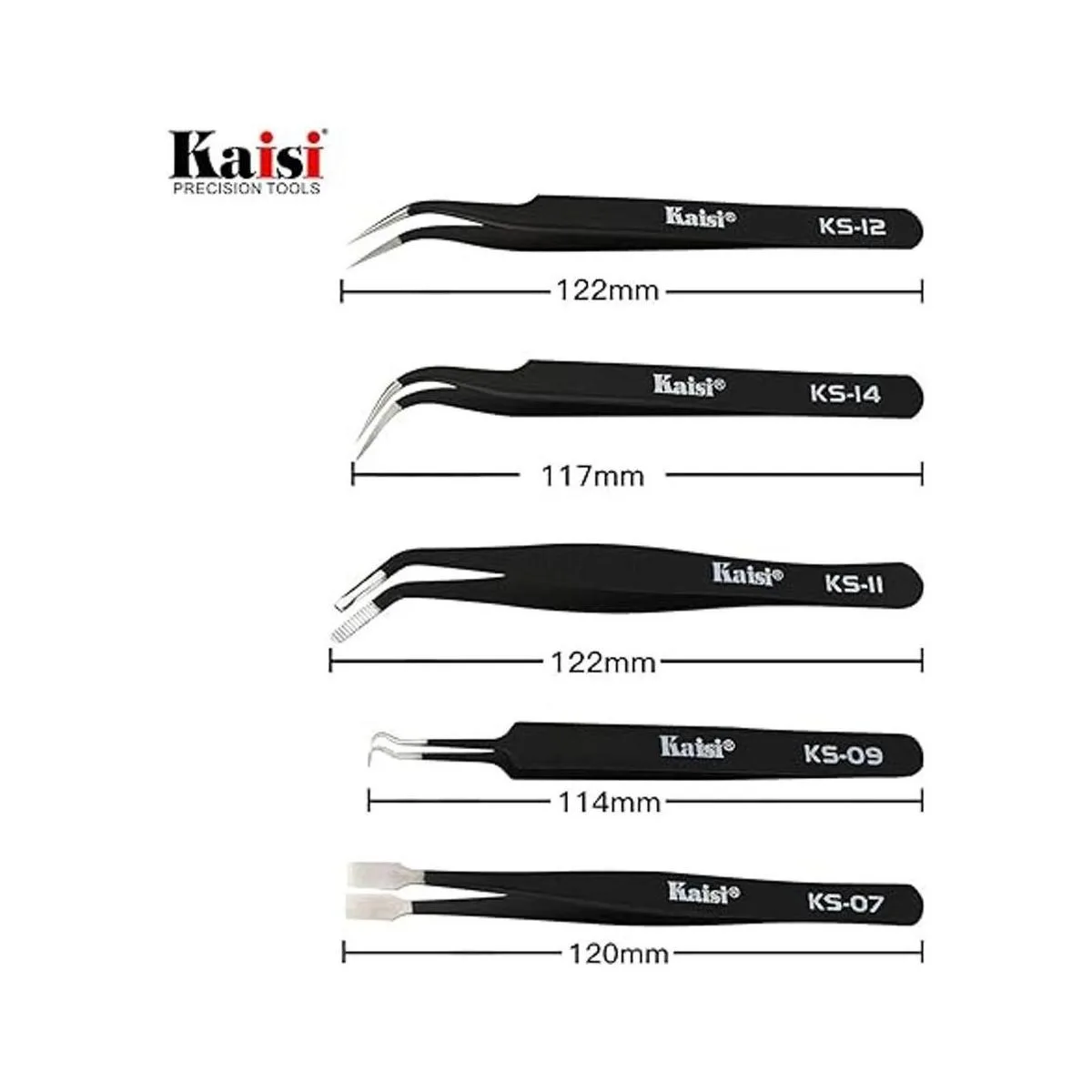 Kaisi Juego de 12 pinzas ESD, kit de pinzas antiestáticas de acero inoxidable para manualidades, joyas, electrónica, trabajo de laboratorio