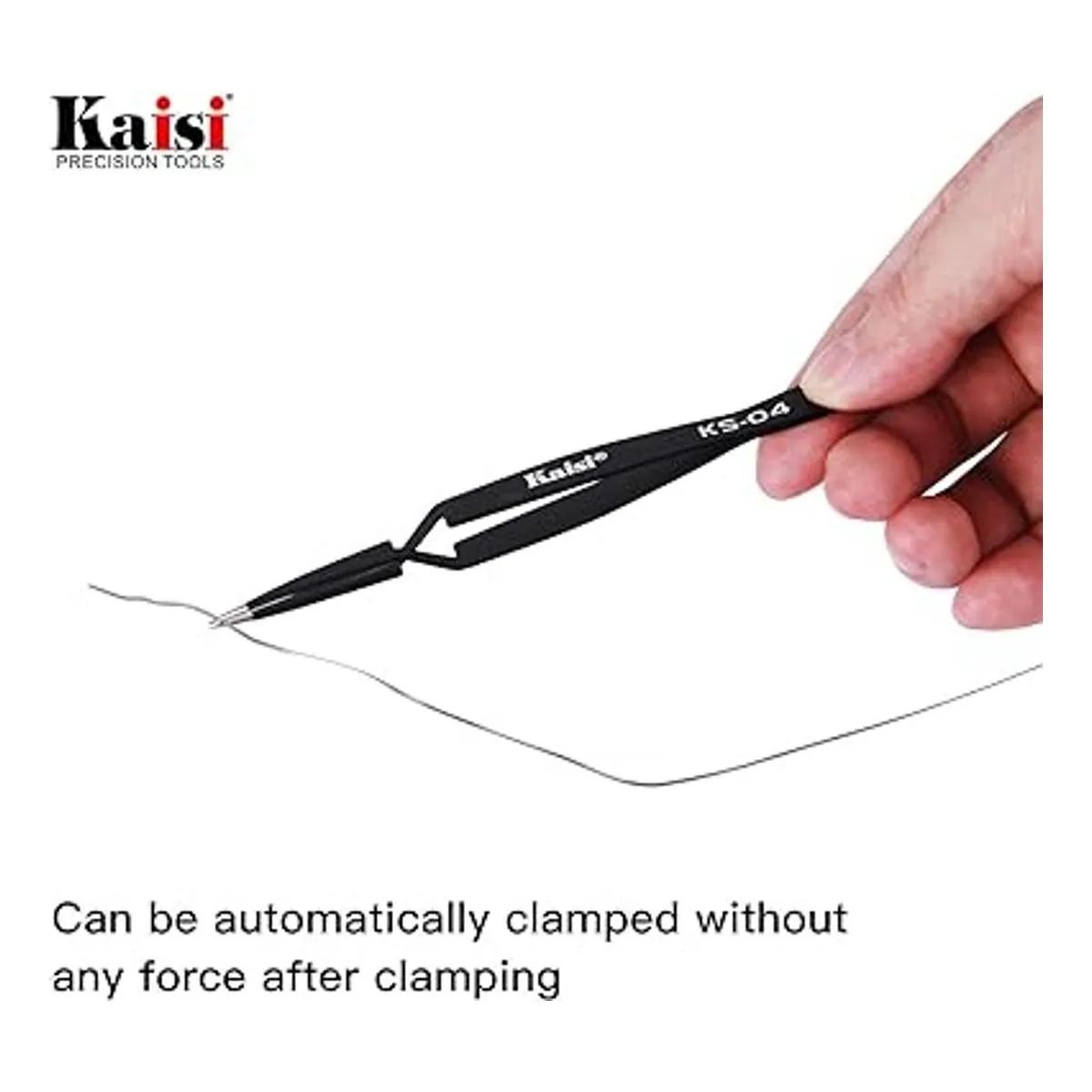 La punta de las pinzas tiene una alta dureza y se puede utilizar para un funcionamiento preciso como soldadura de tablero o reparación de relojes. Por razones de seguridad, devuelve el tubo protector a las pinzas afiladas cuando no esté en uso