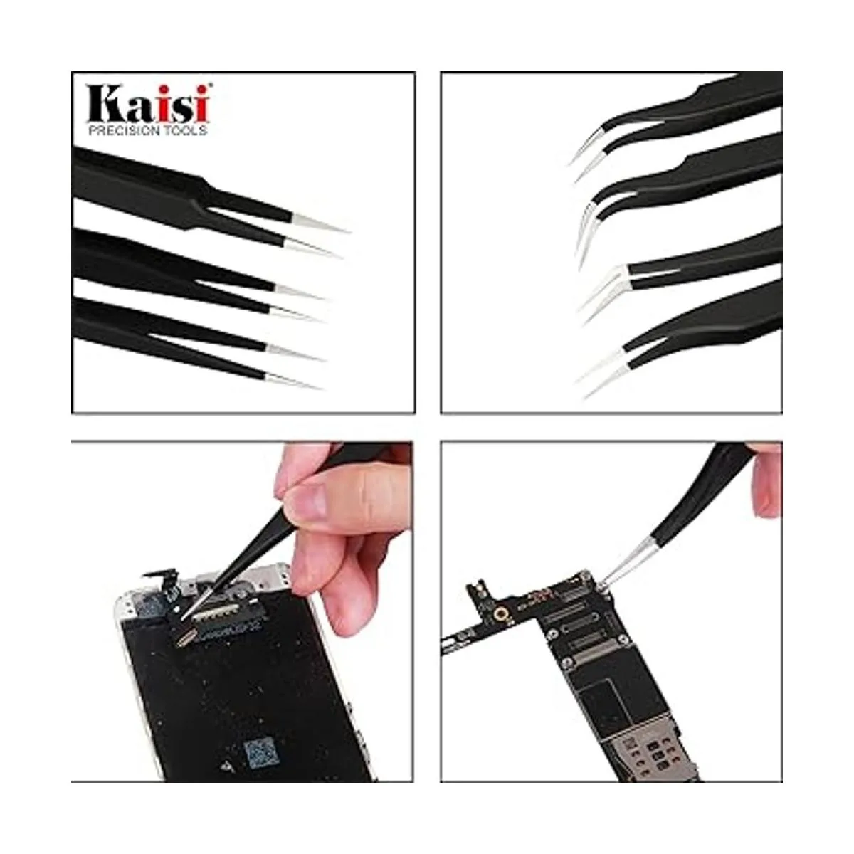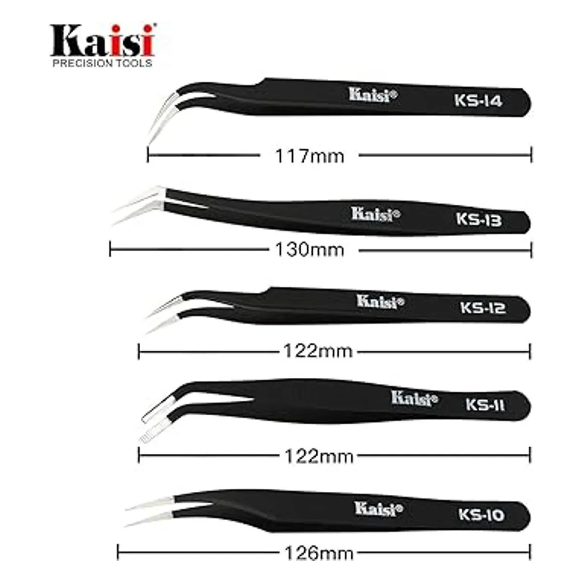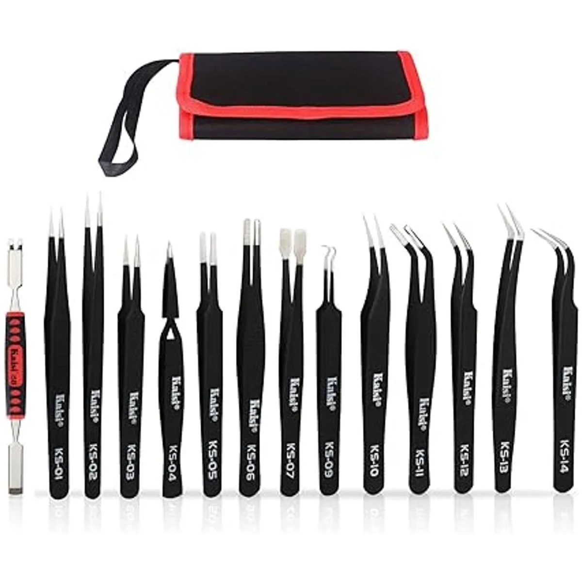 Kaisi Juego de 13 pinzas de precisión antiestáticas ESD con 13 pinzas de precisión no magnéticas de acero inoxidable con bolsa de almacenamiento de pinzas