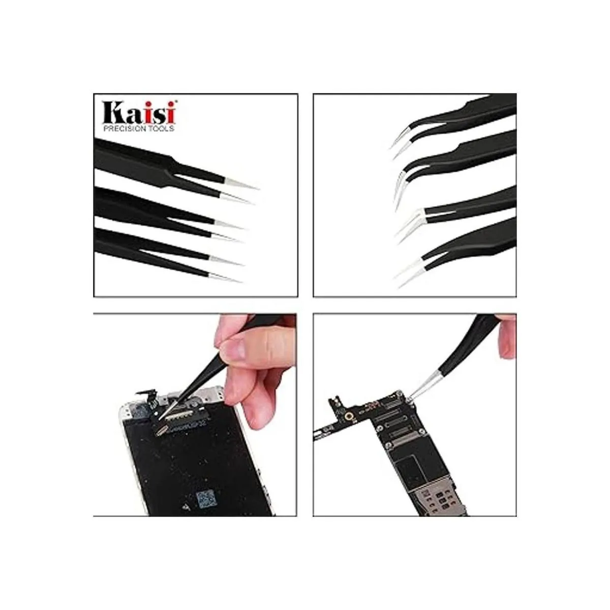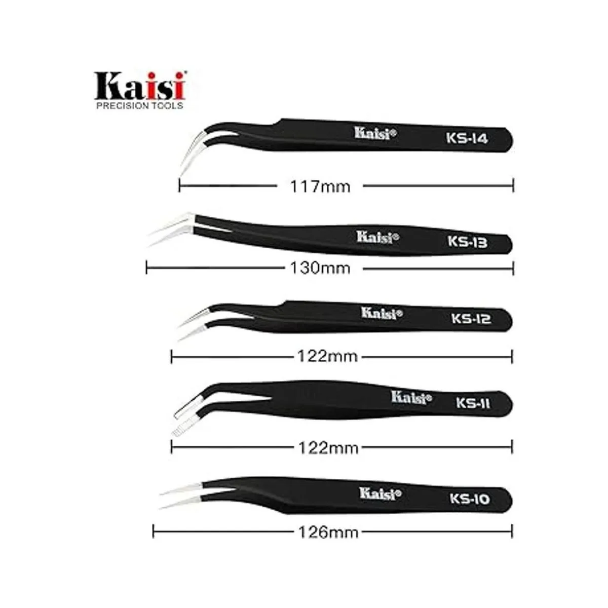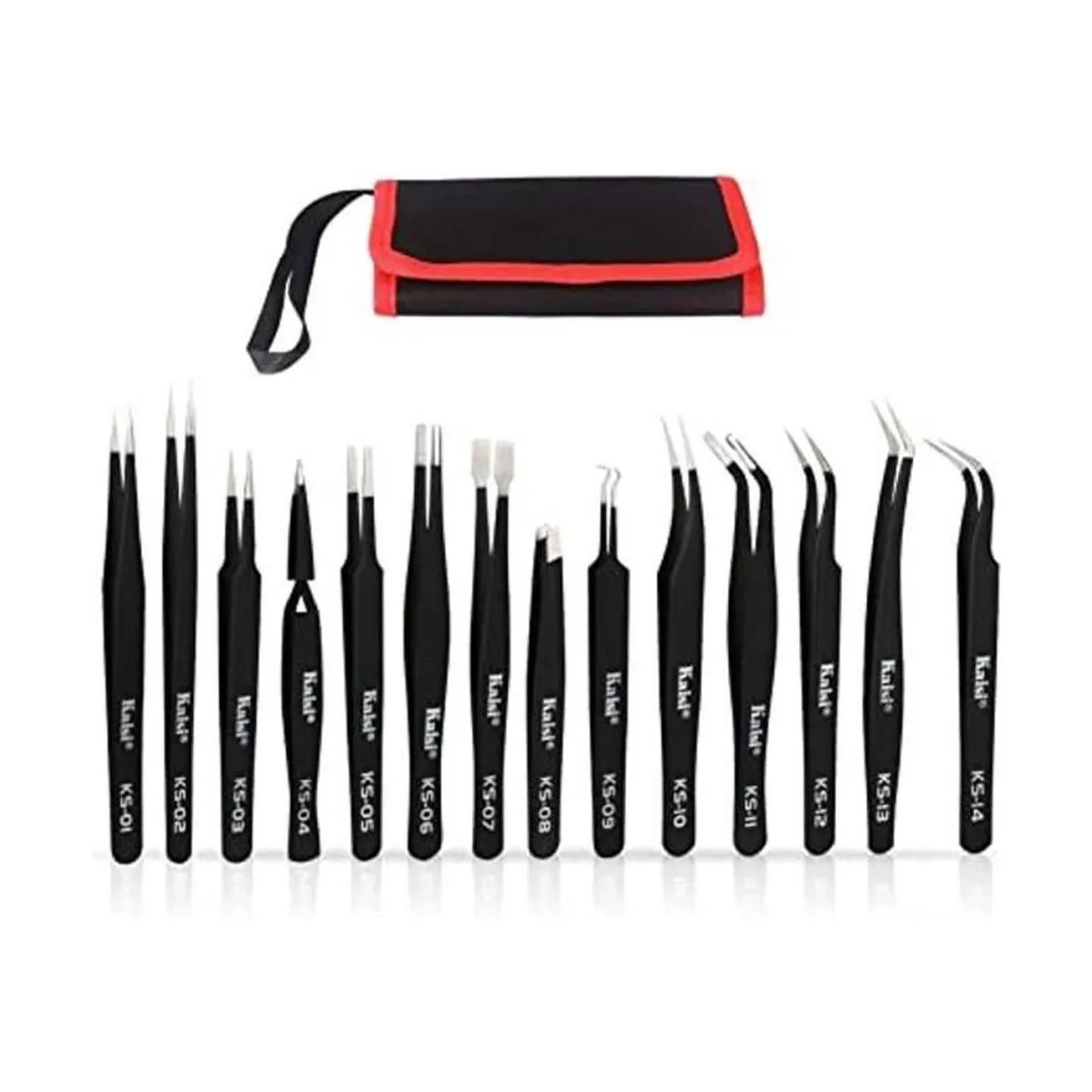 Kaisi Juego de 14 pinzas de precisión, juego de pinzas ESD, juego de pinzas antiestáticas de acero inoxidable para manualidades, joyas, electrónica, trabajo de laboratorio