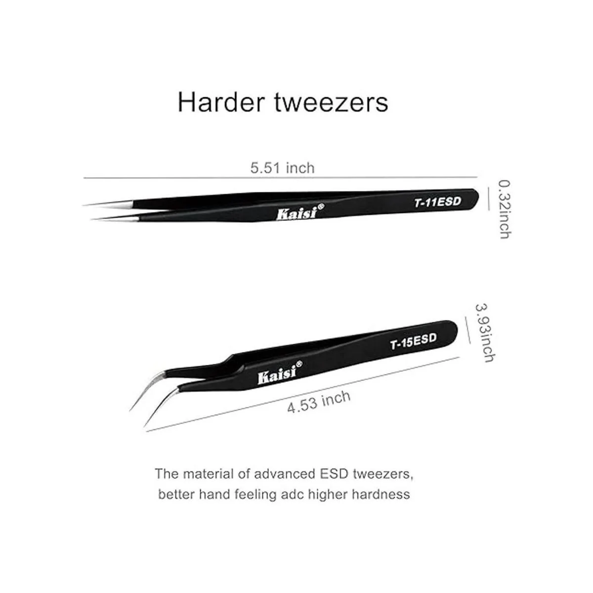 Incluye 7 Nylon Pry herramientas y 3 herramientas de palanca de acero, dos ESD Pinzas
