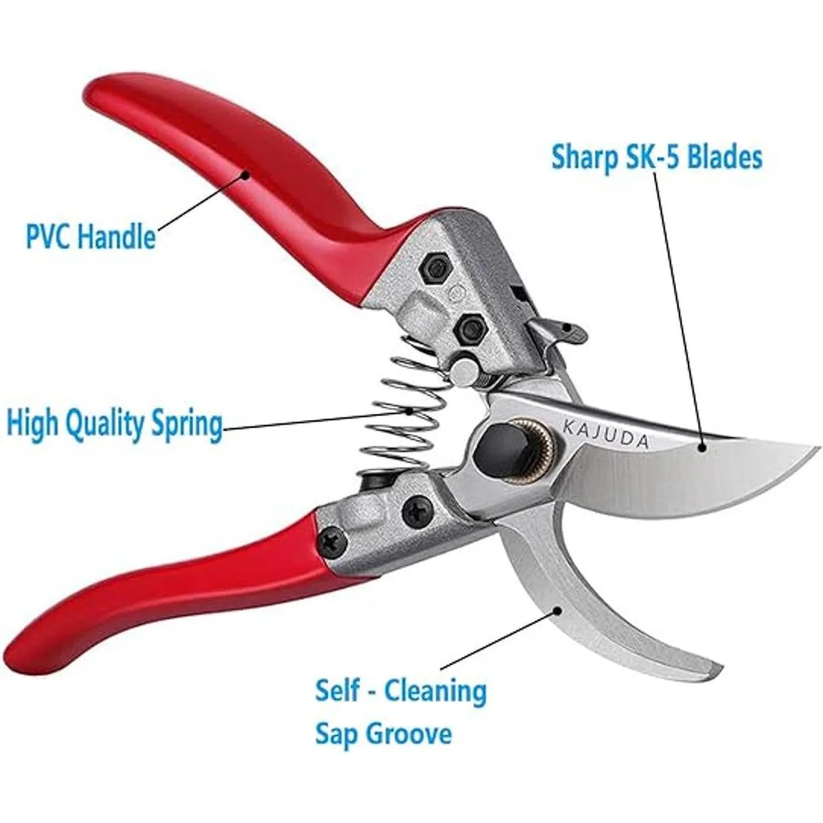 KAJUDA Tijeras de podar de 8 pulgadas, tijeras profesionales de jardín de bypass para plantas, tijeras de corte de flores, tijeras de recorte, herramientas de jardinería tradicional