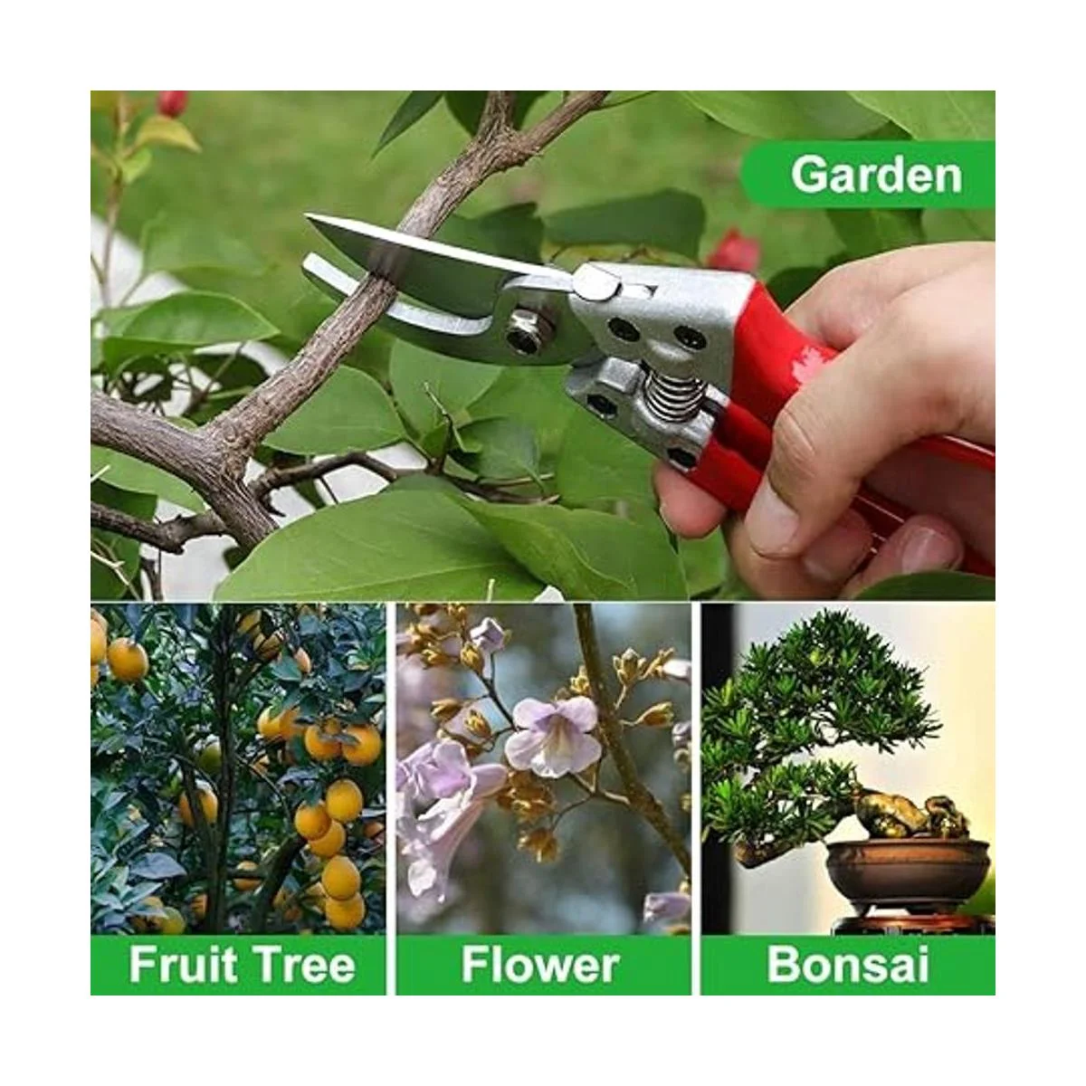 Cuchillas afiladas: las cuchillas de las tijeras de podar de jardinería están hechas de acero profesional SK5, que es ultra fuerte, afilado, resistente al óxido y a la corrosión. Más duradero que otras podadoras de mano tradicionales similares. Las cortadoras de plantas ahorran tiempo y facilitan la poda. Es ideal para recortar y cortar rosales, arbustos, setos, tallos y brunch ligero, etc.