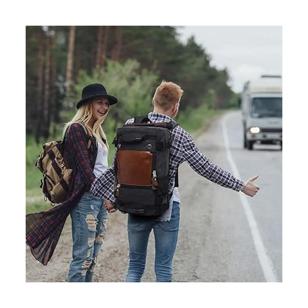 Mochila de lona: lona y piel sintética, diseño de color elegante y duradero.