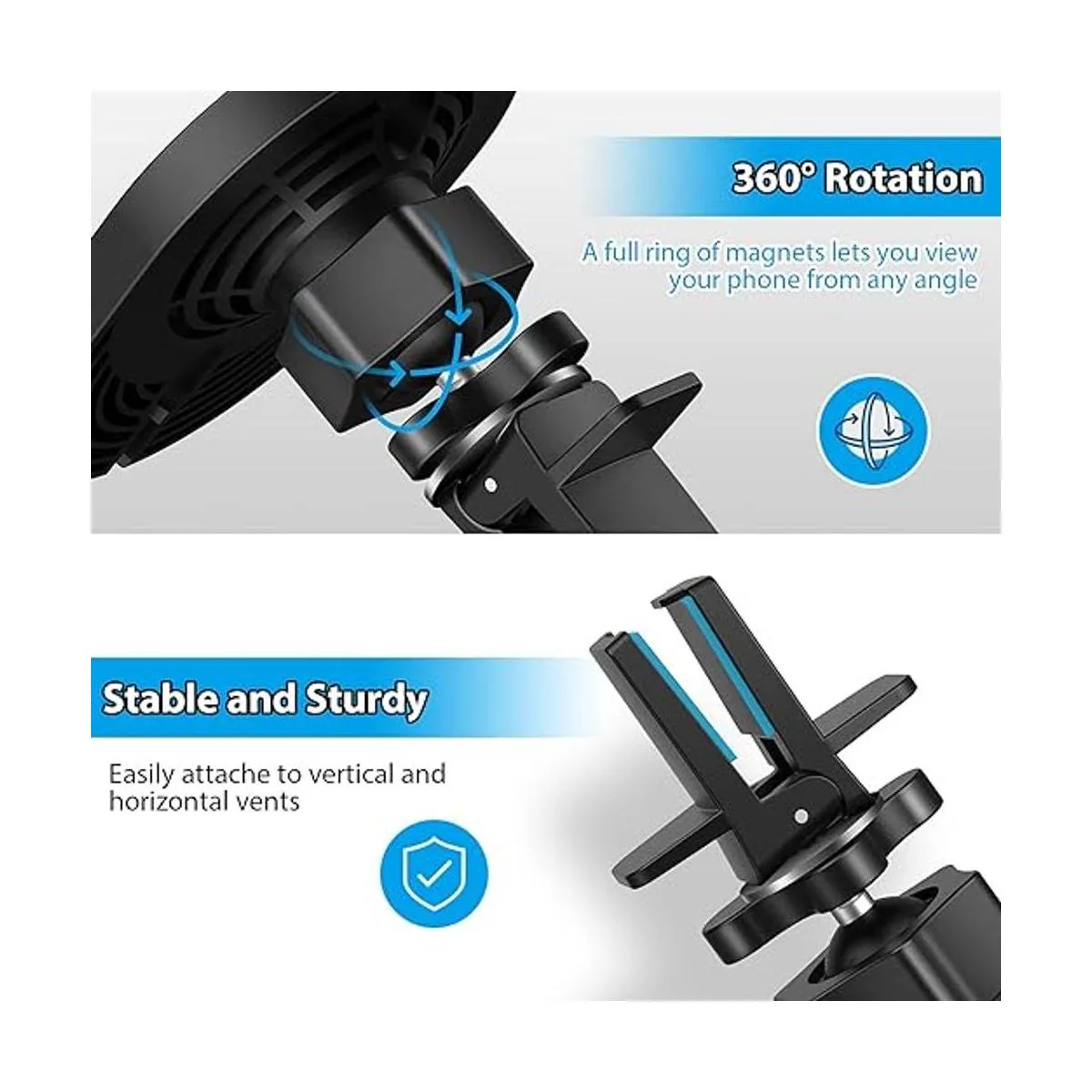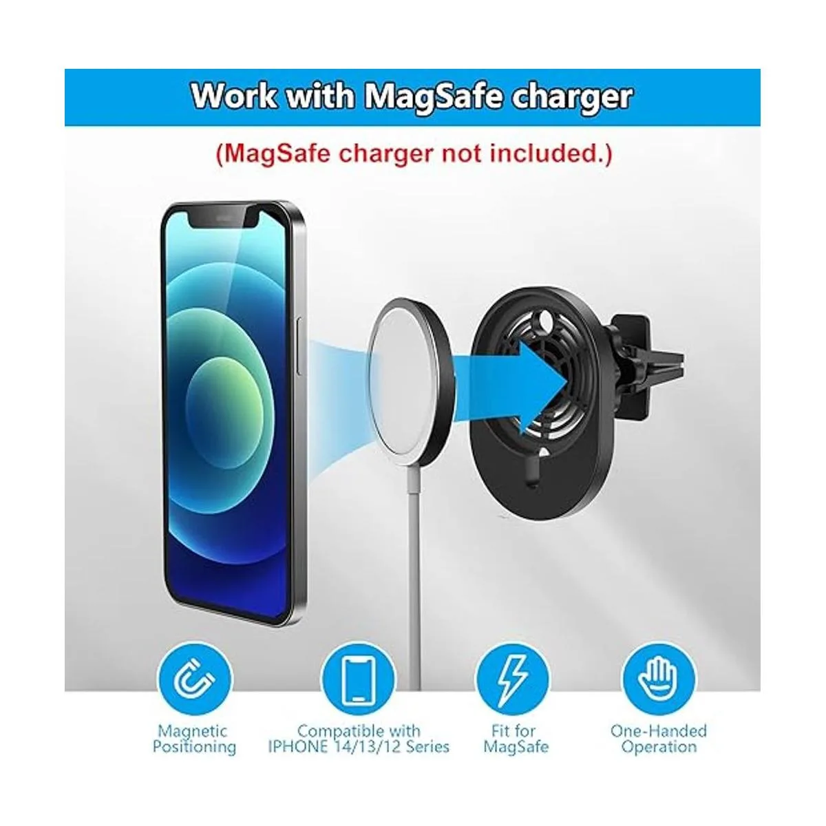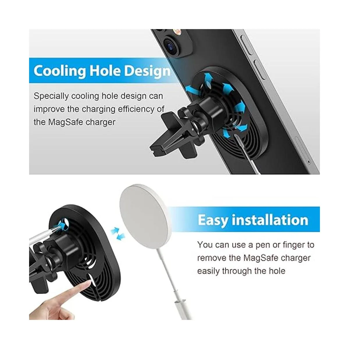 Base de alta calidad y clip de ventilación, se fija poderosamente a rejillas de ventilación verticales y horizontales, mantiene tu iPhone y Apple Magsafe cargador en su lugar de forma segura mientras conduces