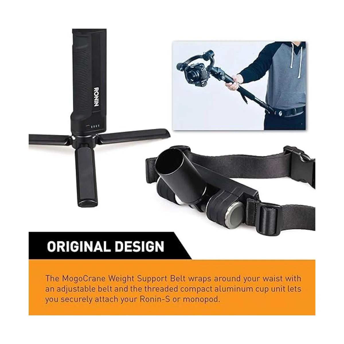 Cinturón ajustable: el cinturón MogoCrane envuelve tu cintura con un cinturón ajustable y la unidad de aluminio compacta roscada te permite fijar de forma segura los accesorios. Máx. 45 pulgadas de largo
