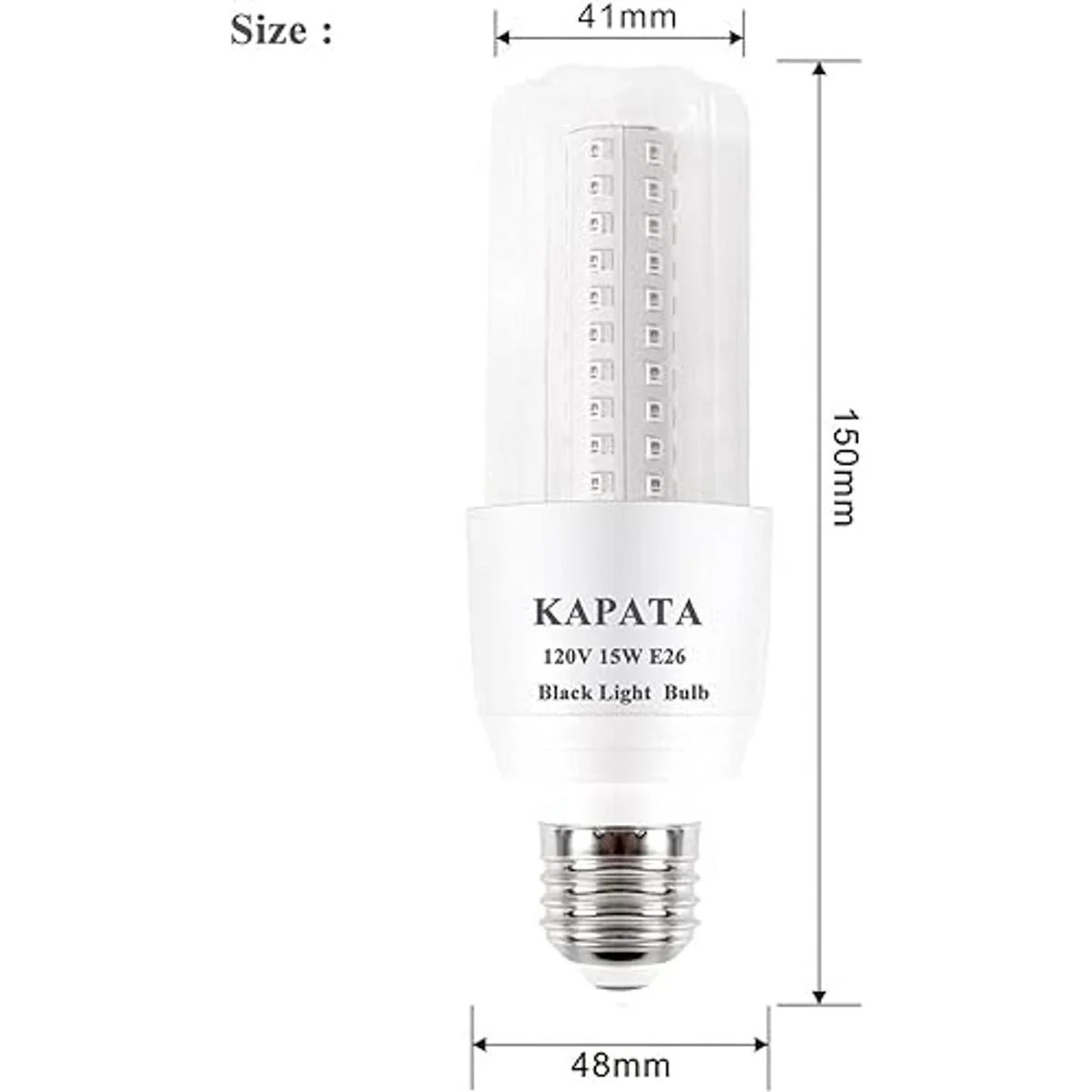 Kapata Bombilla LED UV negra de 15 W de ahorro de energía, luz UV negra, nivel UVA de 395400 nm, brilla en la oscuridad, equivalente a luz fluorescente negra de 100 W E26 de 120 V, paquete de 2