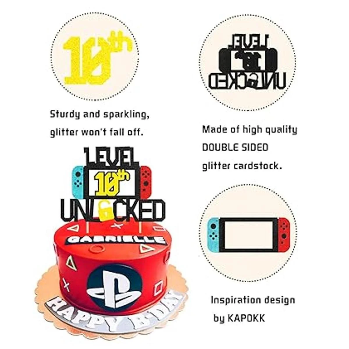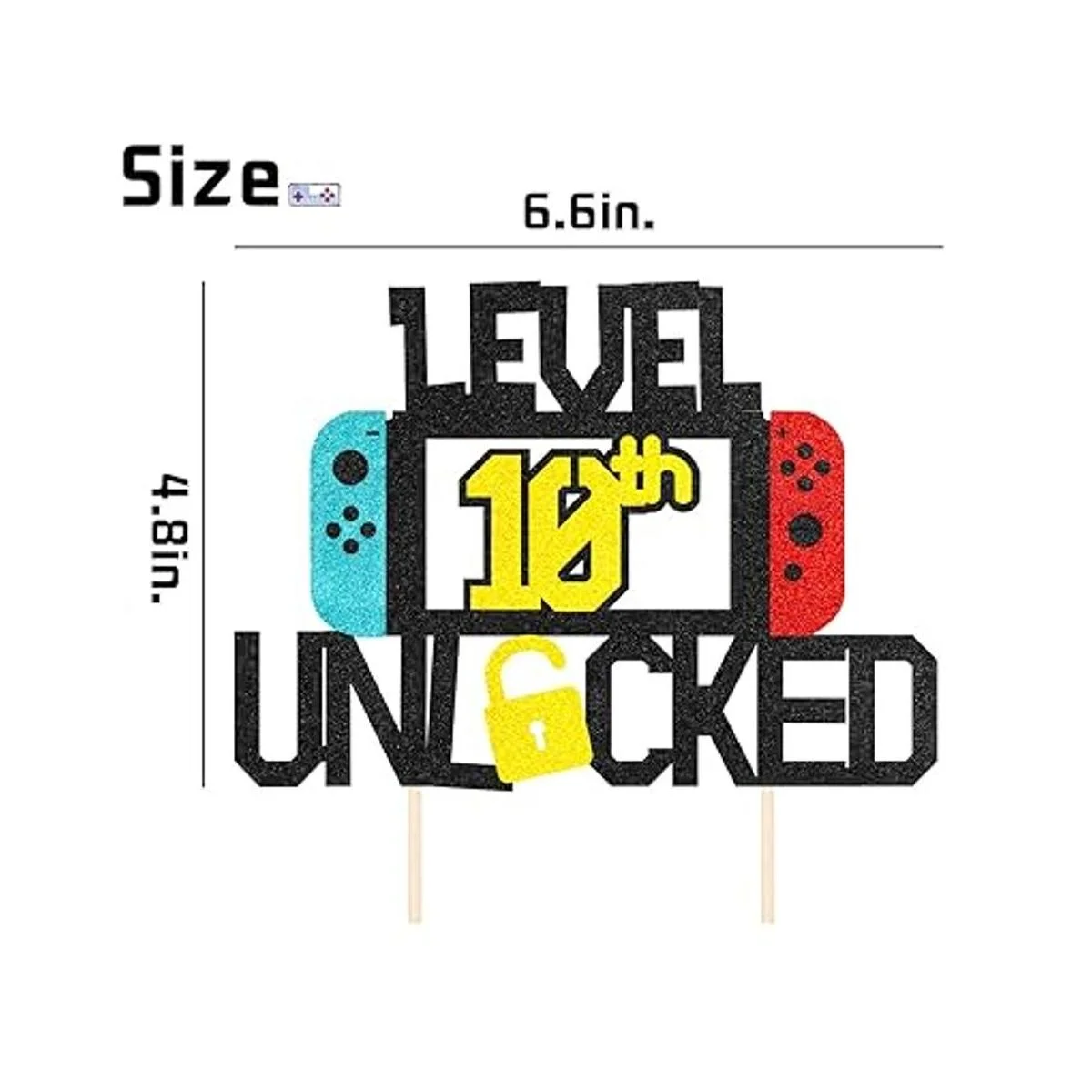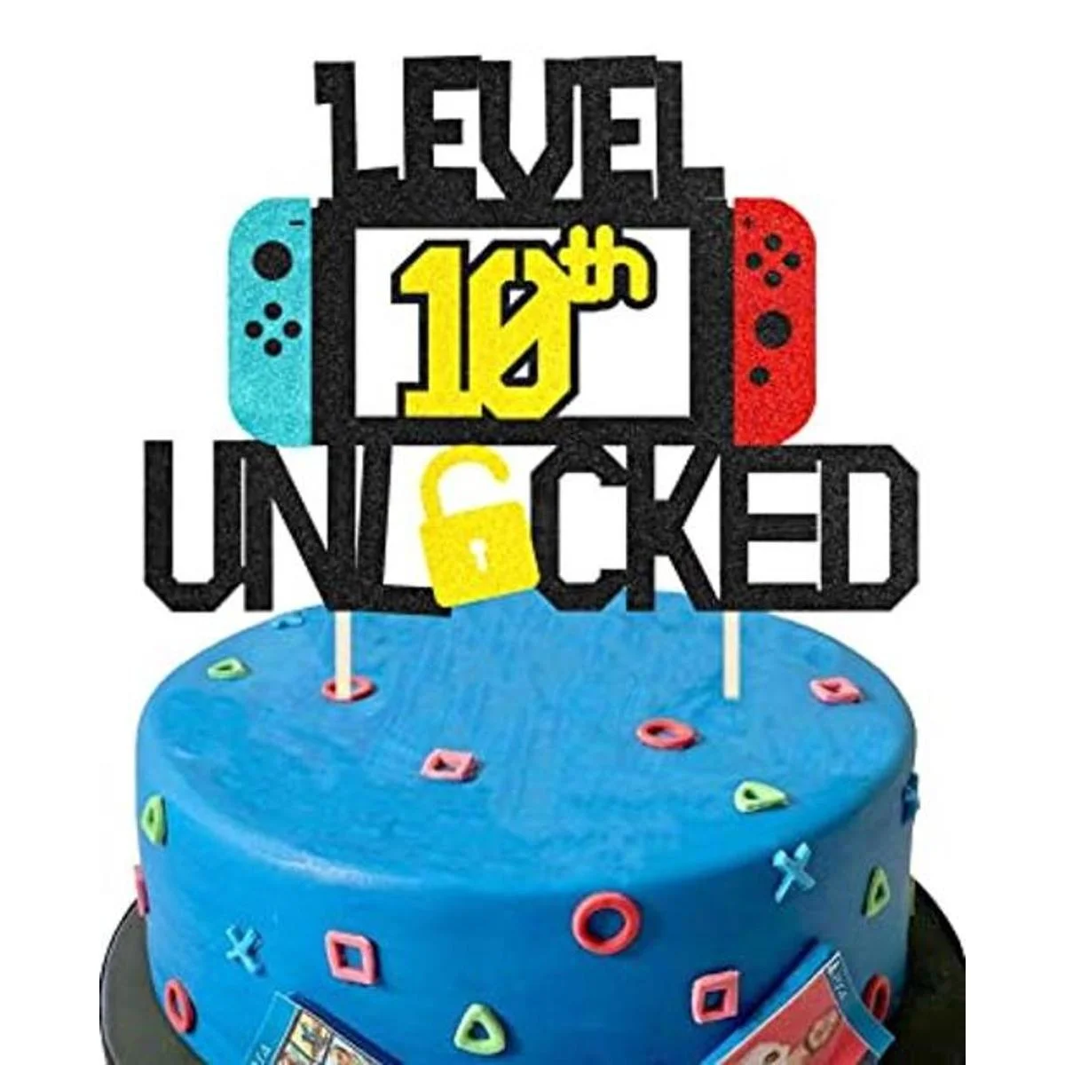 KAPOKKU Nivel 10th Cake Topper para videojuegos temáticos fiesta cumpleaños aniversario celebración