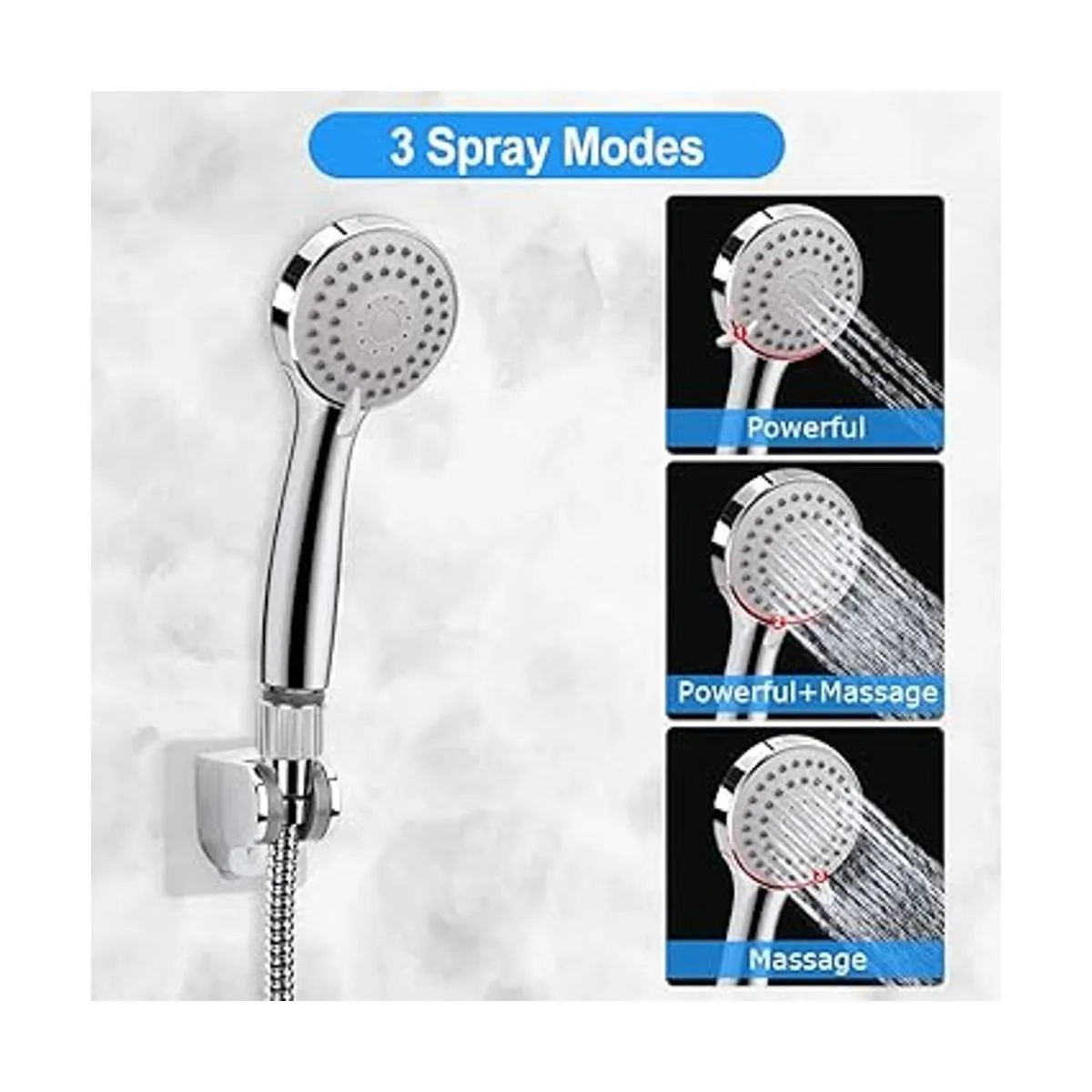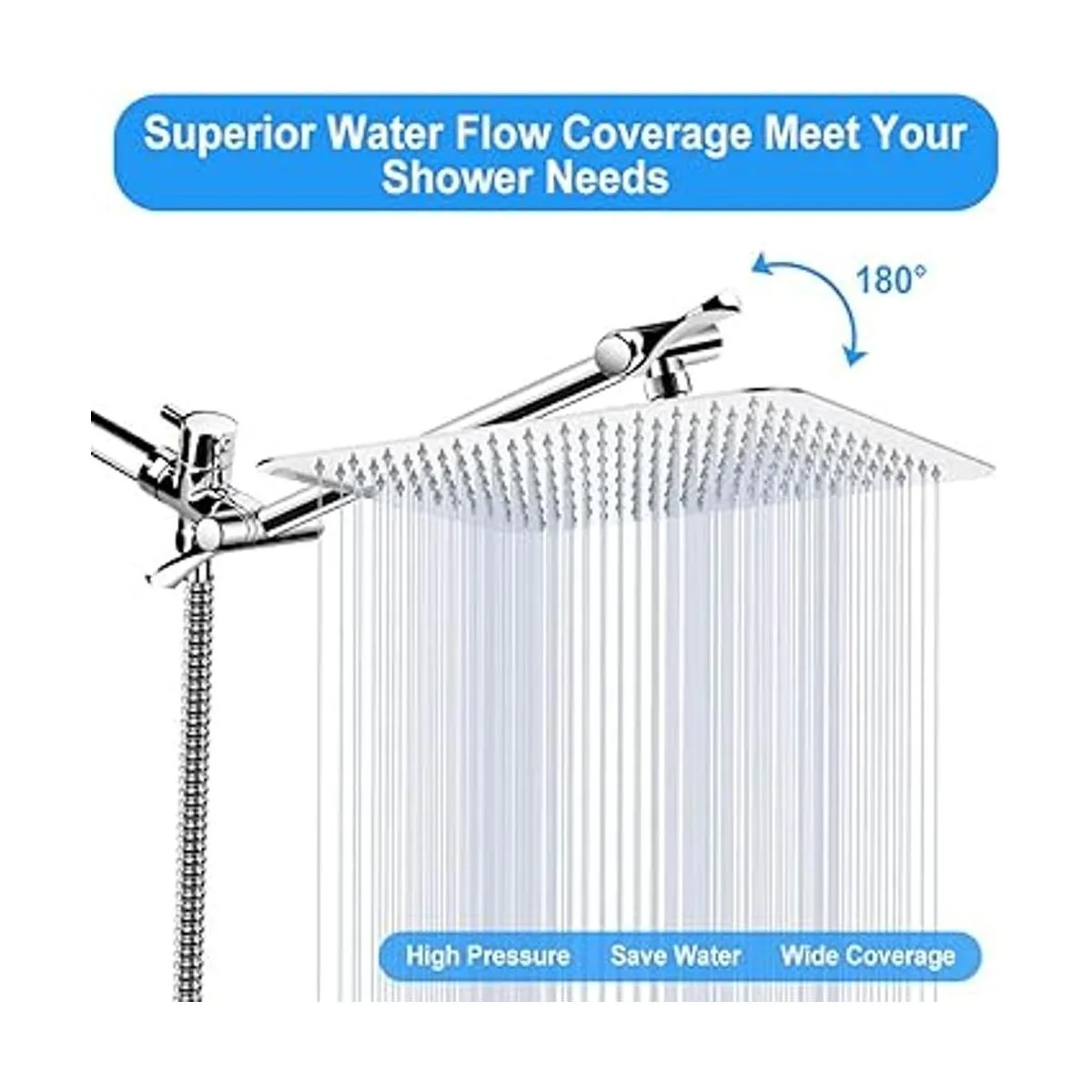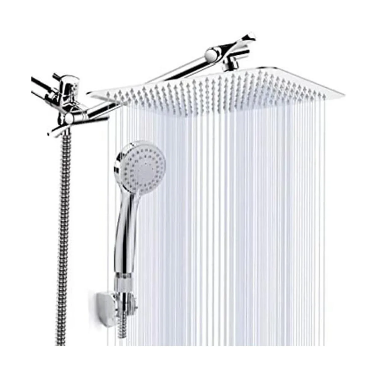 Combo de cabezal de ducha: cabezal de ducha cuadrado grande de 10 pulgadas, ducha de mano con cara cromada, manguera de acero inoxidable de 5 pies, regulador de flujo de agua, desviador de 3 vías, soporte de ducha de ventosa fuerte, cinta de teflón, arandela. Caudal máximo: 1,64 gpm, Fabricante: KAQINU, Código de registro CEC: SUB96635, Modelo: SS2101010931