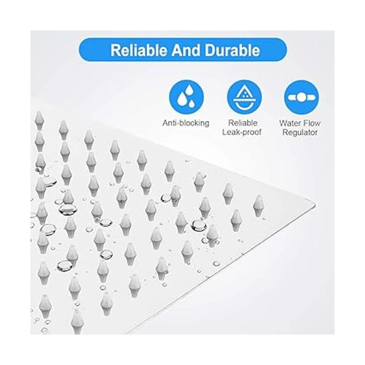 Cabezal de ducha cuadrado grande: cabezal de ducha cuadrado grande de 10 pulgadas hecho de acero inoxidable 304 de alta calidad, viene con conexión fiable a prueba de fugas. Sus 100 boquillas de silicona autolimpiables estrechamente agrupadas para una cobertura superior del flujo de agua. Este cabezal de ducha definitivamente te ofrecerá una experiencia de ducha estilo hotel y una vida más saludable, también hace que tu baño se vea lujoso y elegante.