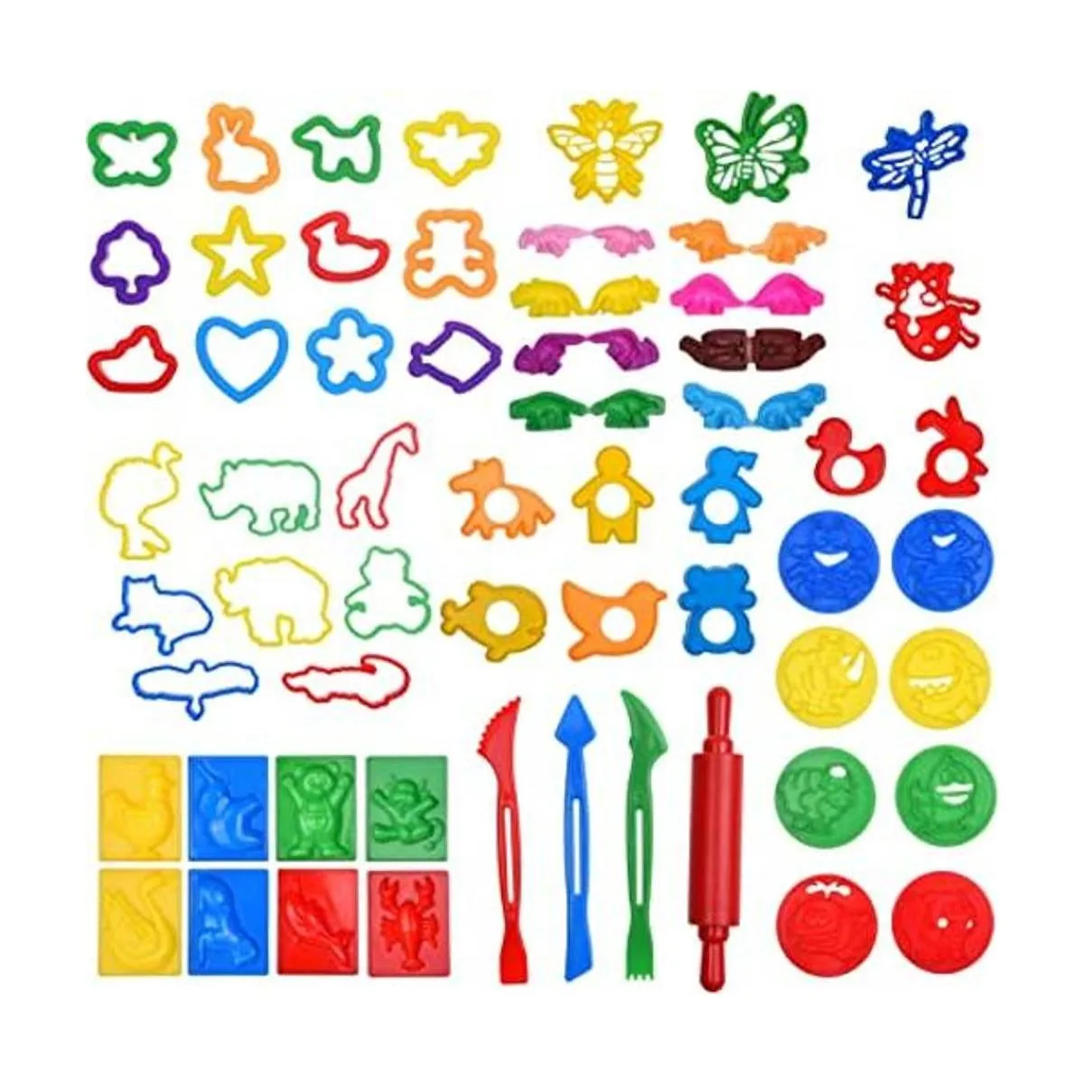 Material seguro y no tóxico. Las piezas de colores brillantes son seguras para los niños y están hechas con plástico no tóxico ABS. El kit de primera calidad puede ser utilizado por los más jóvenes, ya que puede durar el uso frecuente. Son compatibles con diferentes marcas de arcilla de modelado y plastilina.