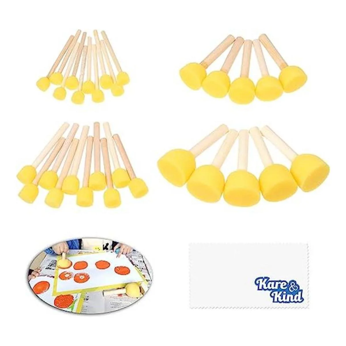 Kare Kind Juego de 30 esponjas redondas para pintar y manualidades, plantillas, graffiti, varios tamaños, cepillo de espuma y mango de madera, para artistas