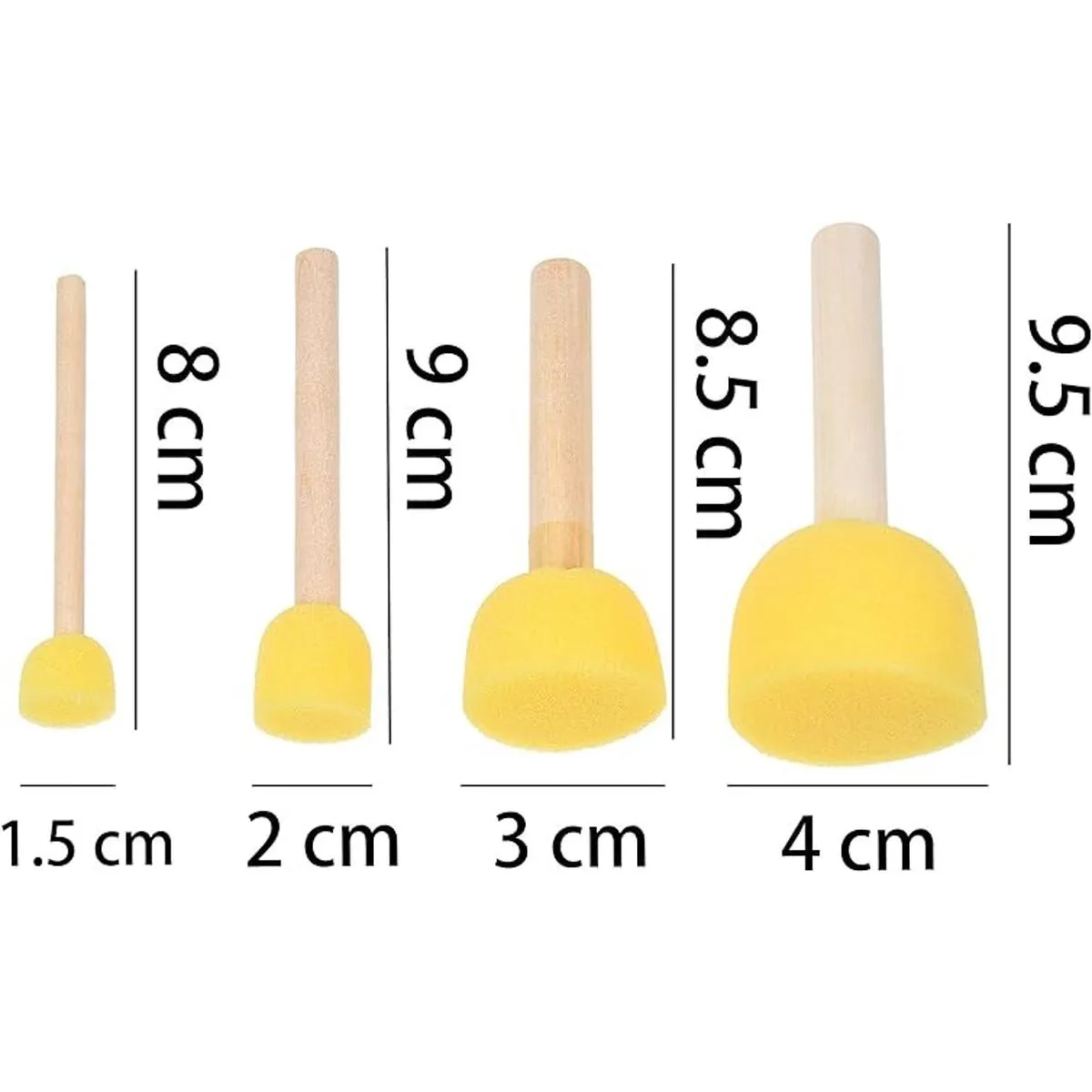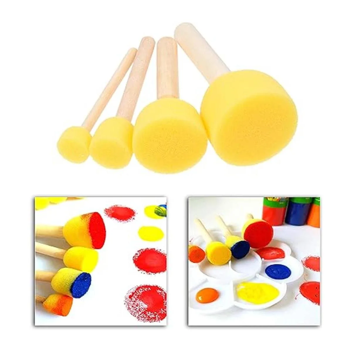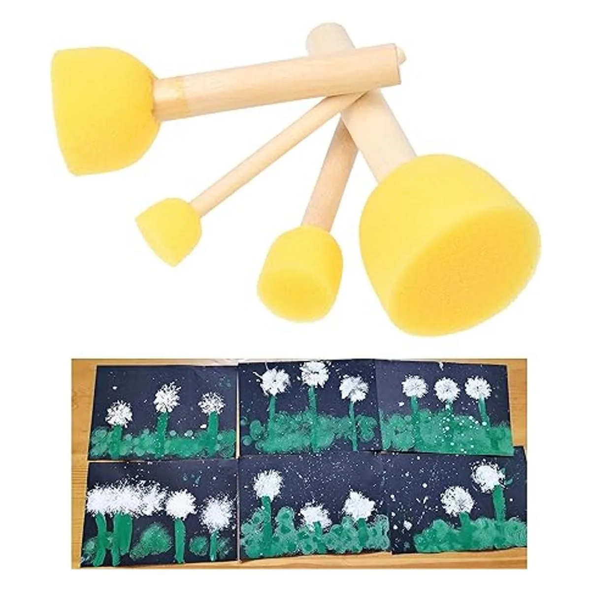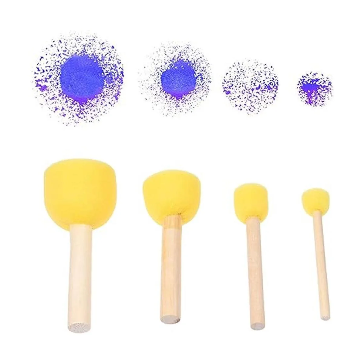 Material de alta calidad: crea atractivos y brillantes patrones de color con las esponjas altamente absorbentes. El mango de fácil agarre de cada cepillo está hecho de madera de alta calidad que es fácil de transportar y limpiar. Hay diferentes tamaños de cepillos de esponja para elegir: 5 x grande 1.6 x 3.7 in, 5 x mediano 1.2 x 3.3 in, 10 x pequeño 0.8 x 3.5 in, 10 x extra pequeño 0.6 x 3.1 in.