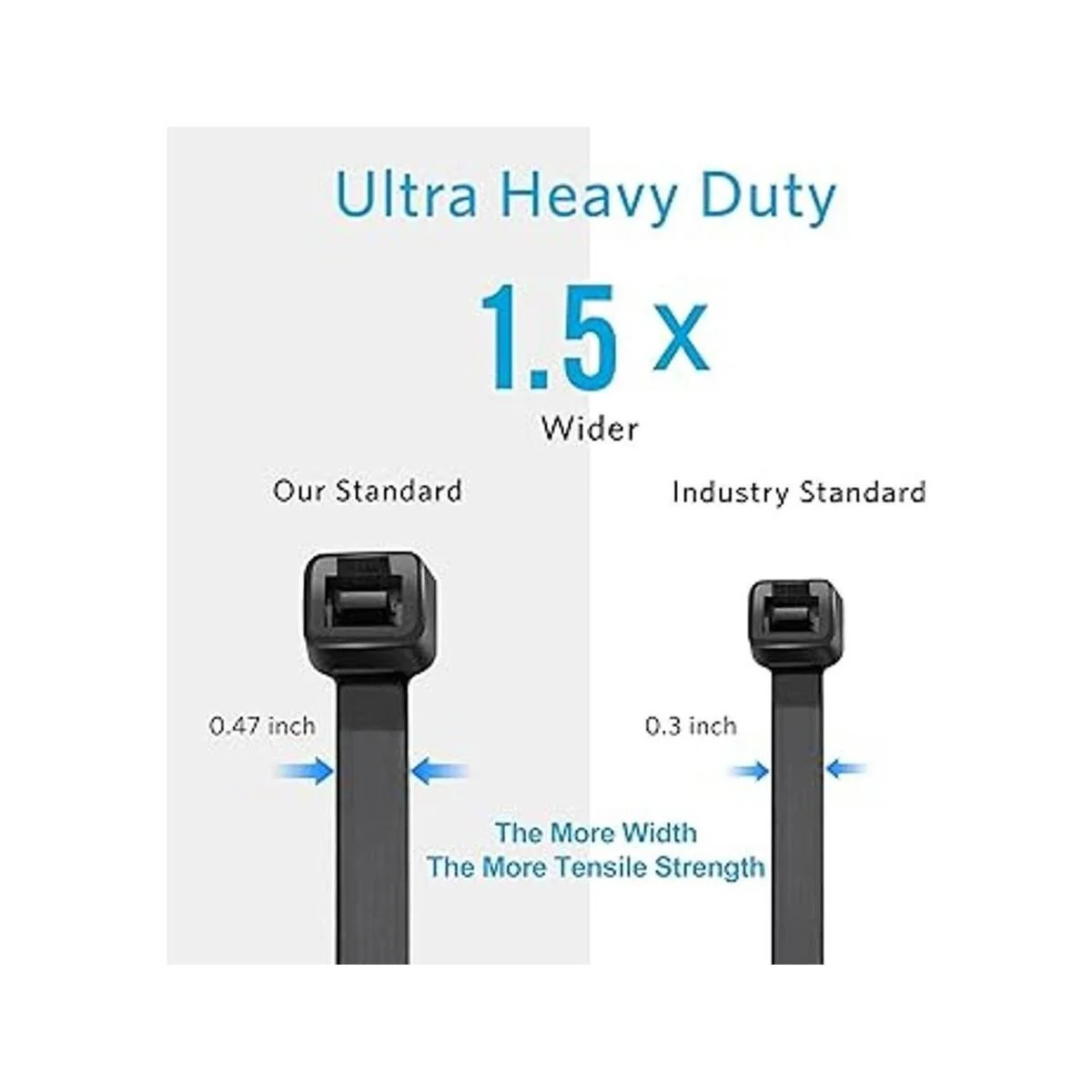 Karoka Bridas industriales resistentes con resistencia a la tracción de 250 libras, 11.6 pulgadas, bridas de cables eléctricos resistentes, 50 piezas, bridas anchas y gruesas,