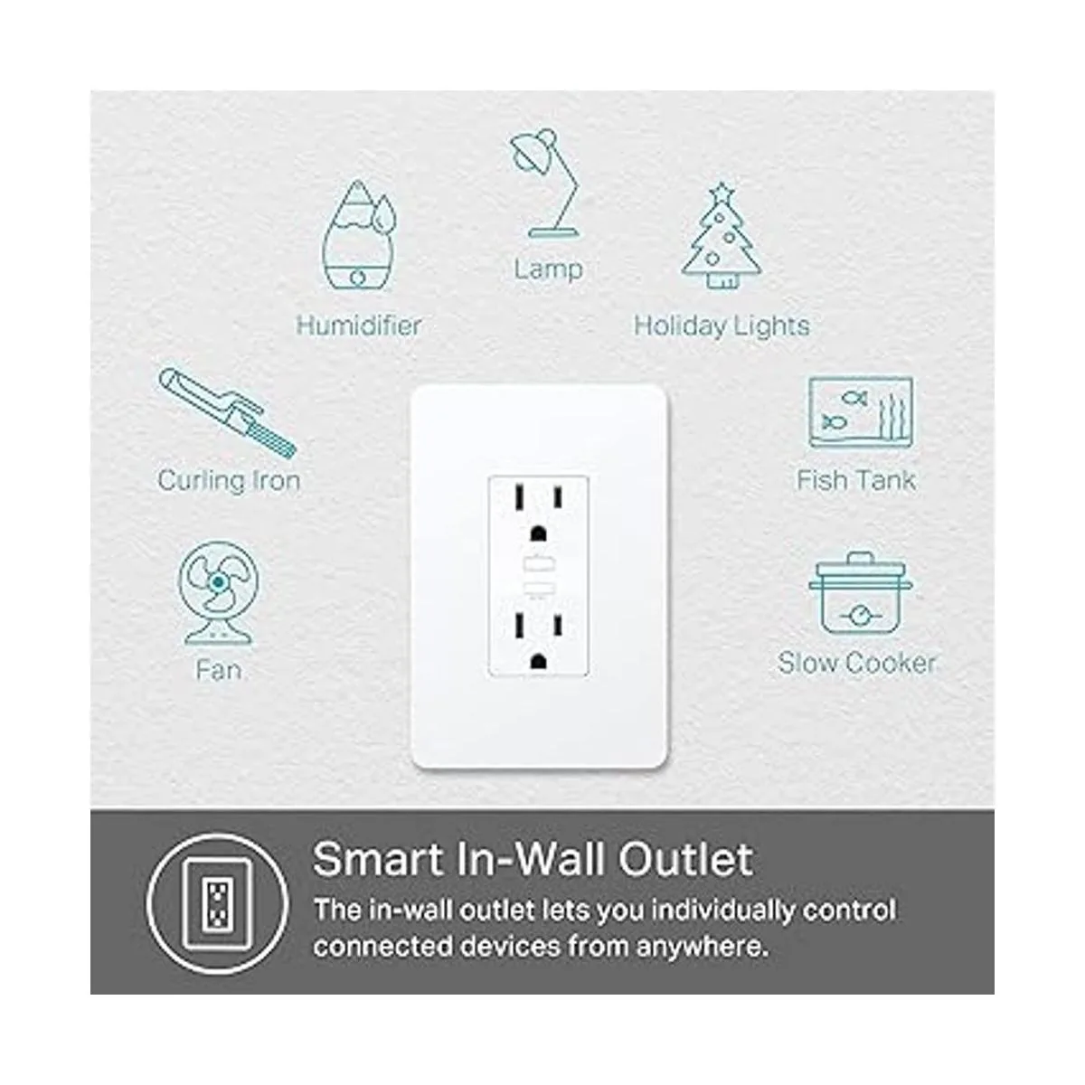 Tomas de pared inteligentes: la toma de pared Kasa Smart te permite controlar 2 dispositivos conectados desde cualquier lugar al mismo tiempo o individualmente; todas las características y beneficios de un enchufe inteligente Kasa multiplicado; ocupa menos espacio con esta opción de pared que es ideal para tu sala de estar, cocina, incluso tu dormitorio