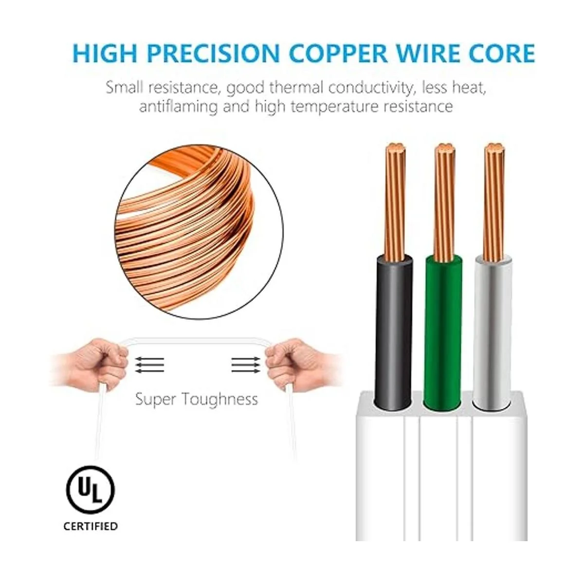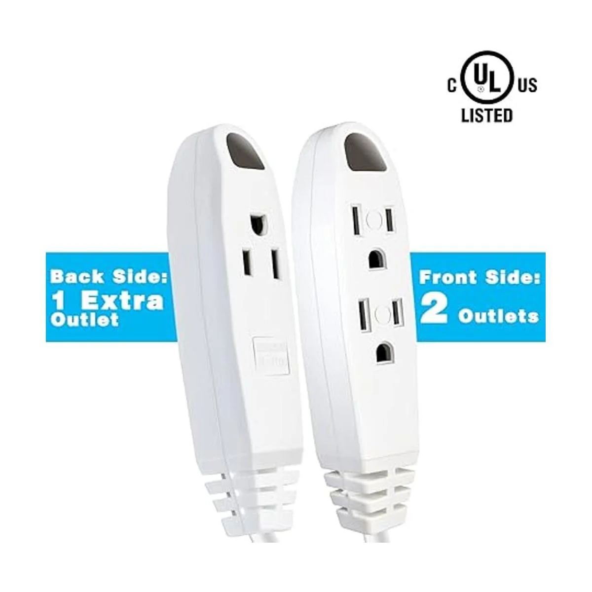 Simple y práctico: convierte fácilmente una toma de corriente en tres tomas para conectar más electrónica en una ubicación conveniente. El cable de extensión de 6 pies es perfecto para tu lámpara de escritorio, ventilador portátil, laptop, cargador de teléfono, aspiradora, reloj despertador y otros dispositivos electrónicos domésticos que necesitan un poco de longitud extra.