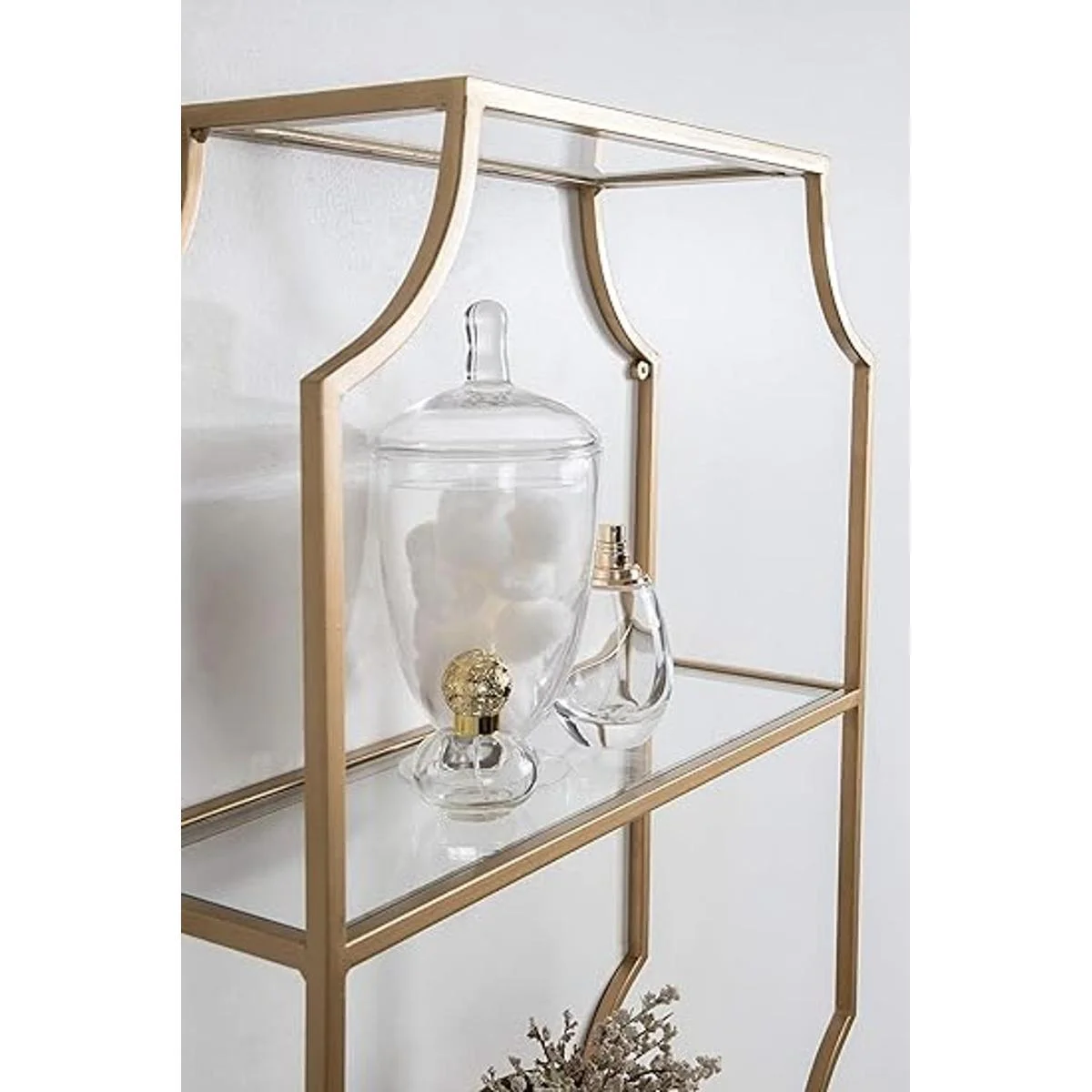 Material de calidad: el estante Ciel cuenta con tres estantes de vidrio insertados en un marco de metal geométrico, proporcionando una hermosa declaración con función
