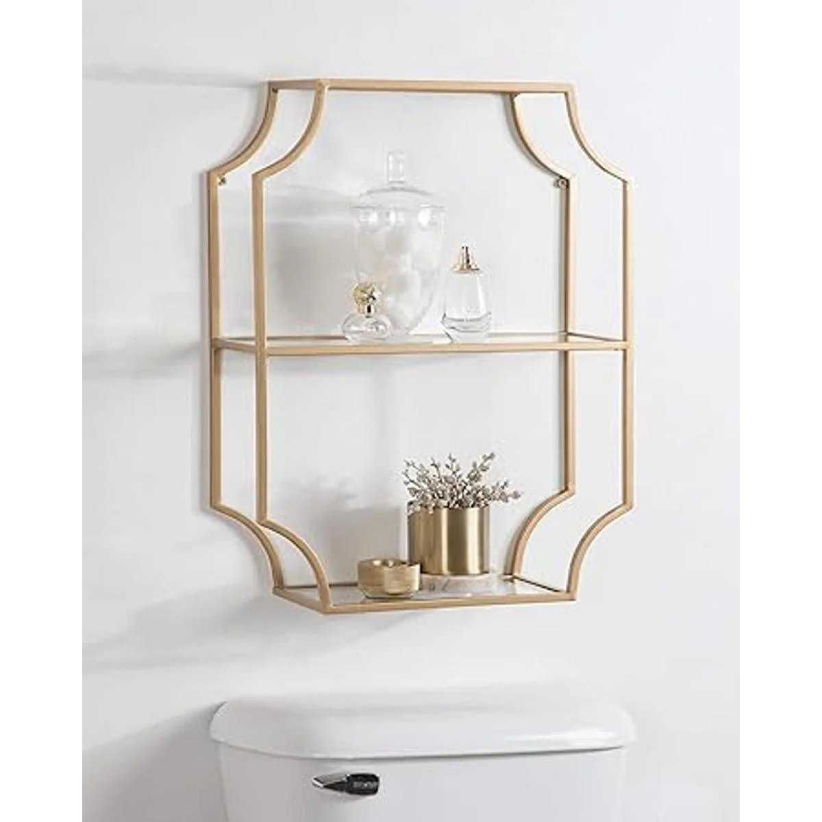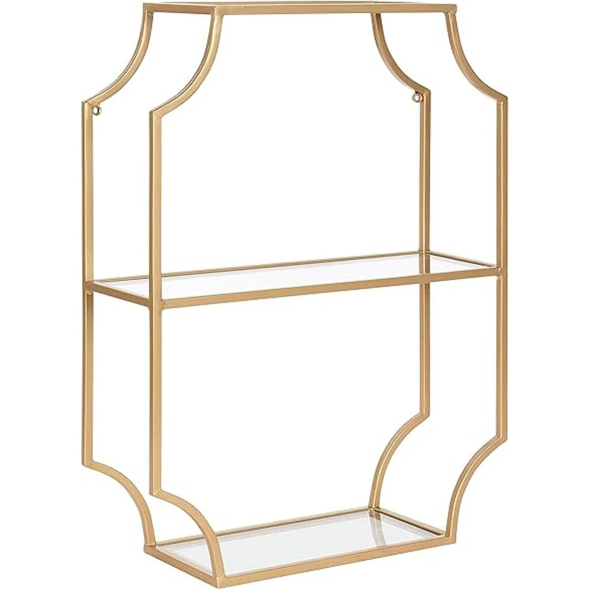 Kate and Laurel Ciel Glam Estantería de pared geométrica, 18 x 24 pulgadas, color dorado, estantes decorativos para almacenamiento y exhibición