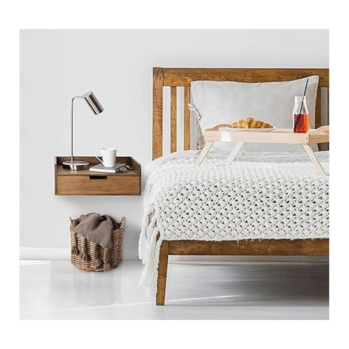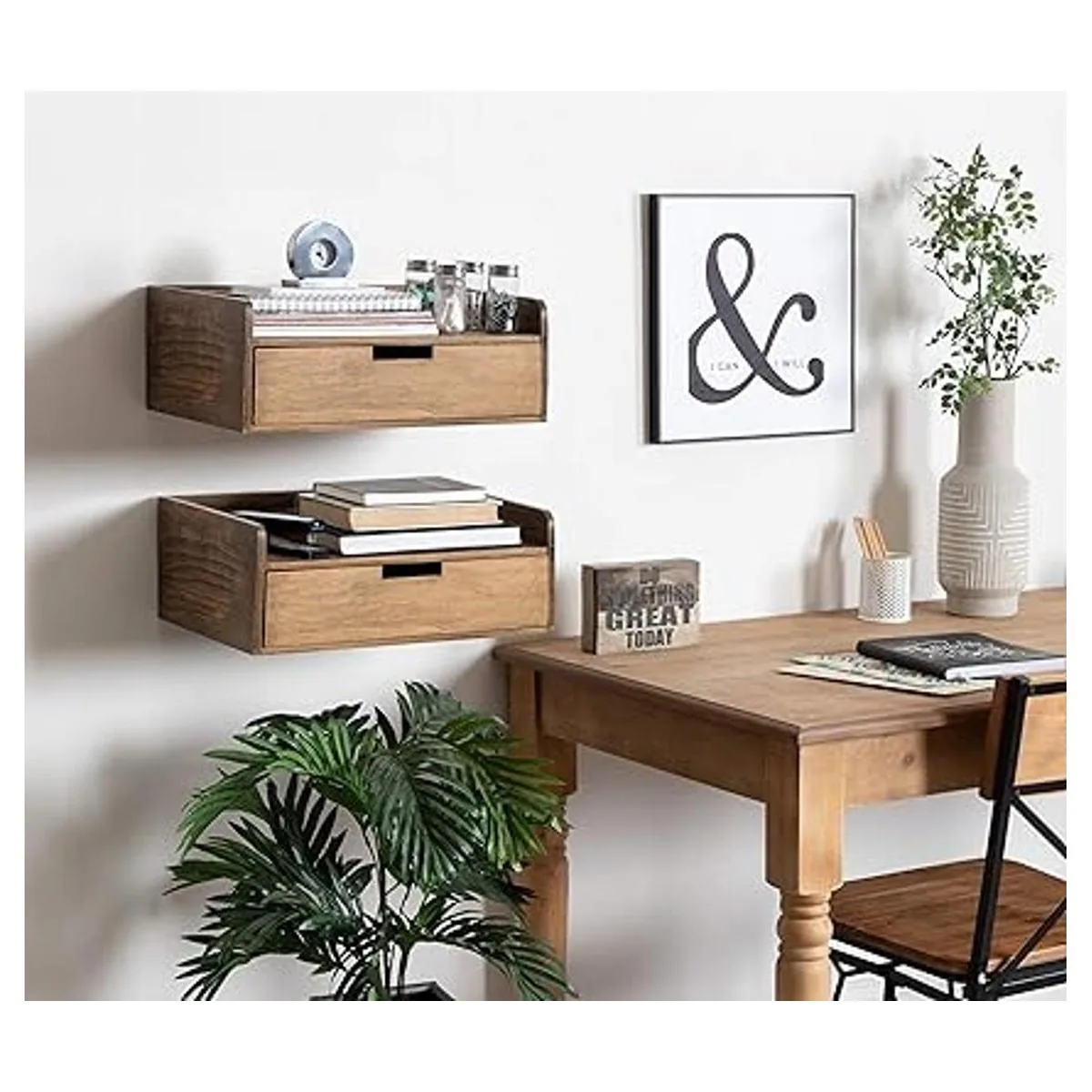 Un aspecto rústico y elegante para tu pared, este acento decorativo de madera maciza funciona como un estante o una mesita de noche flotante o mesa auxiliar