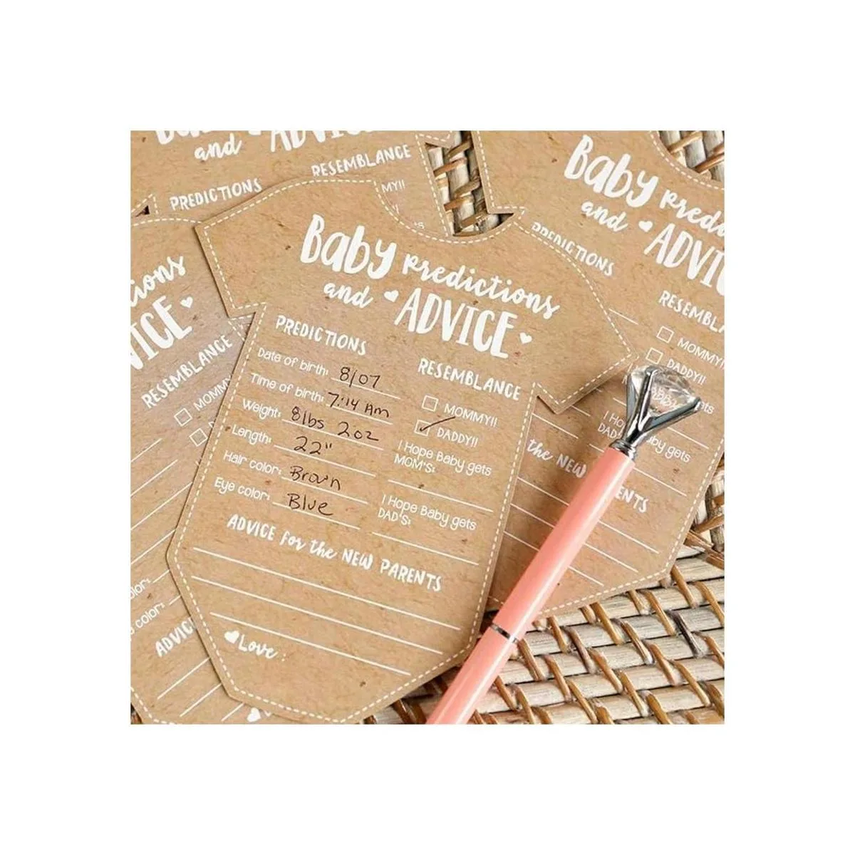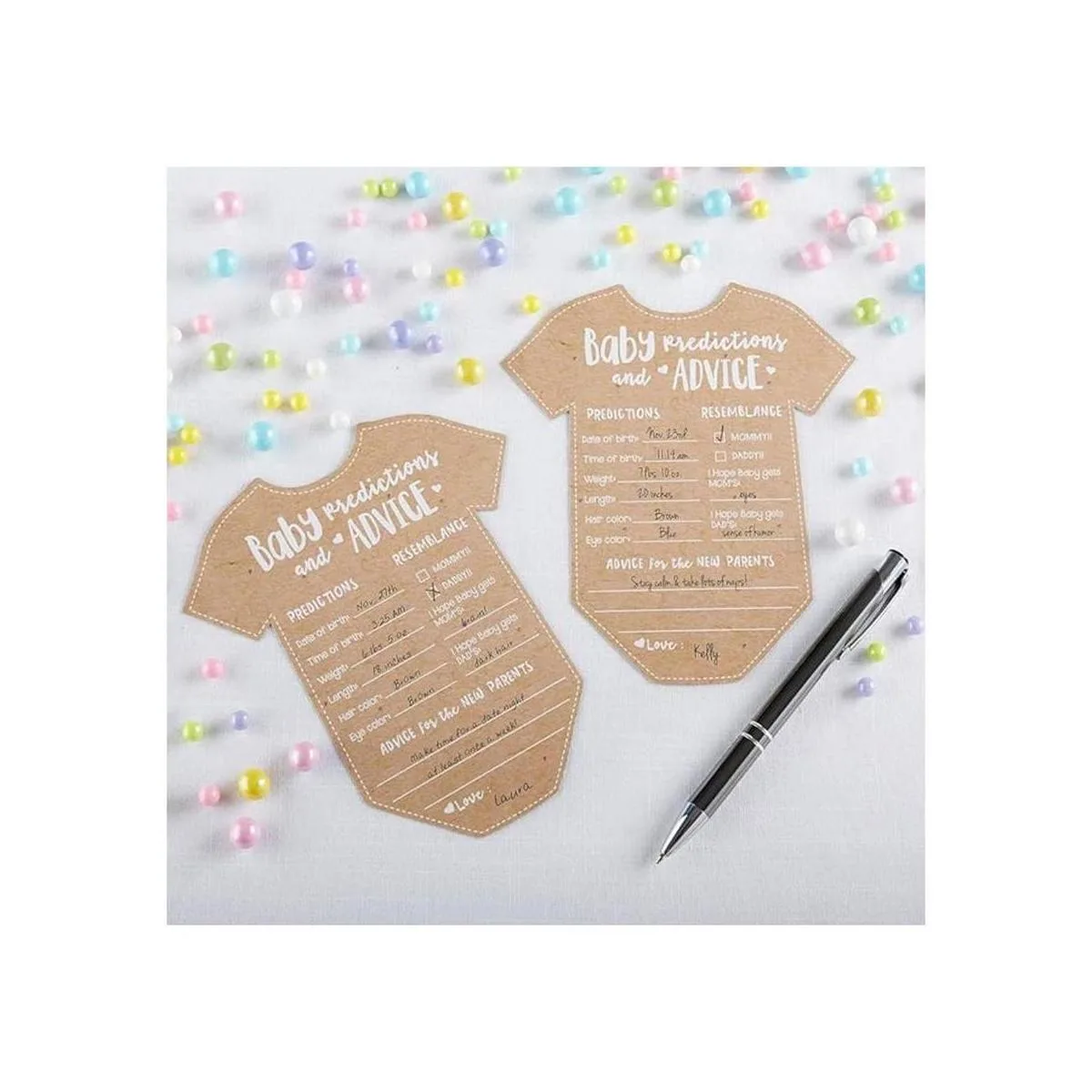 Kate Aspen Tarjetas de predicción de bebé para baby shower, tarjetas de consejos, decoraciones de baby shower, juego de 50, juego de baby shower, talla única, kraft, blanco, 28440NA