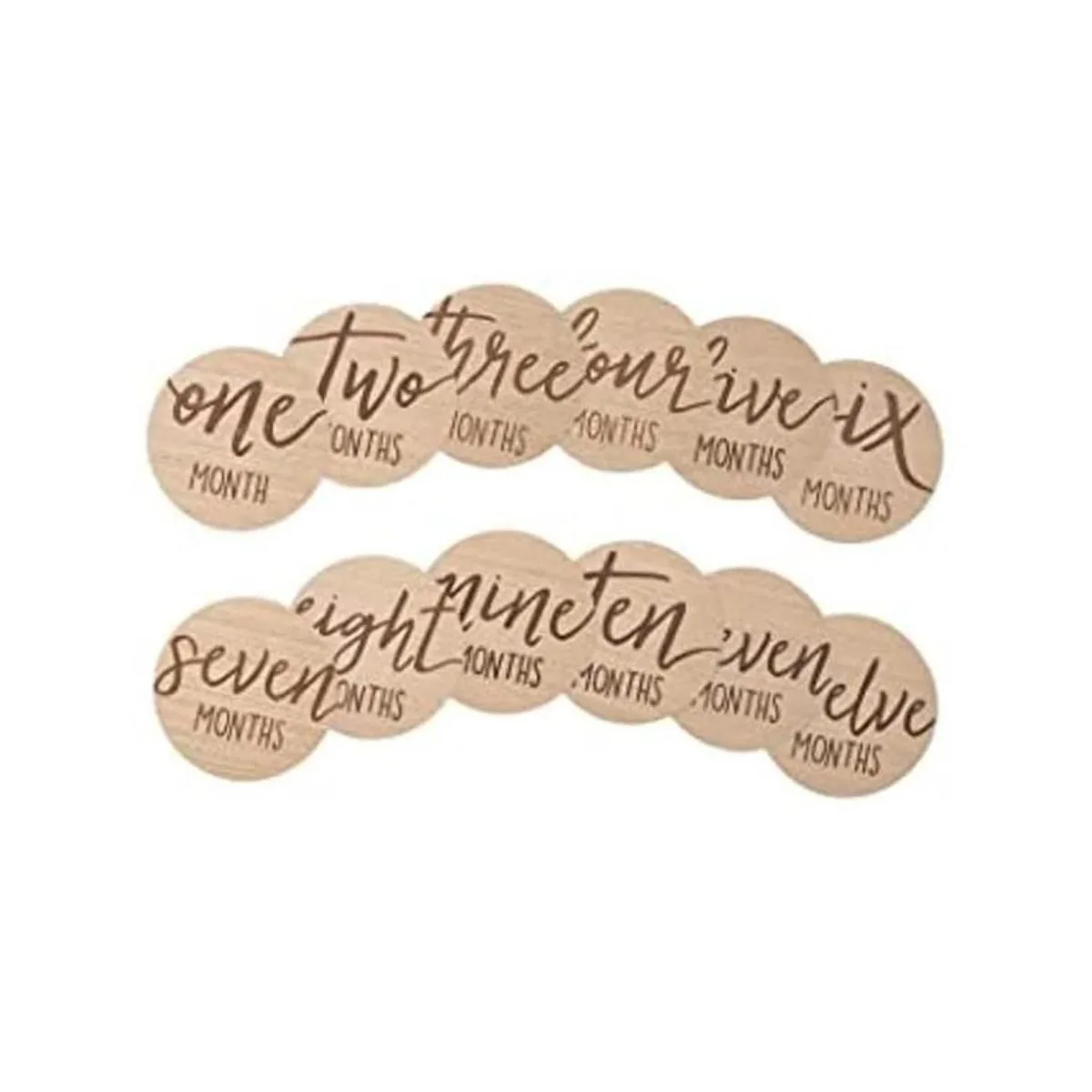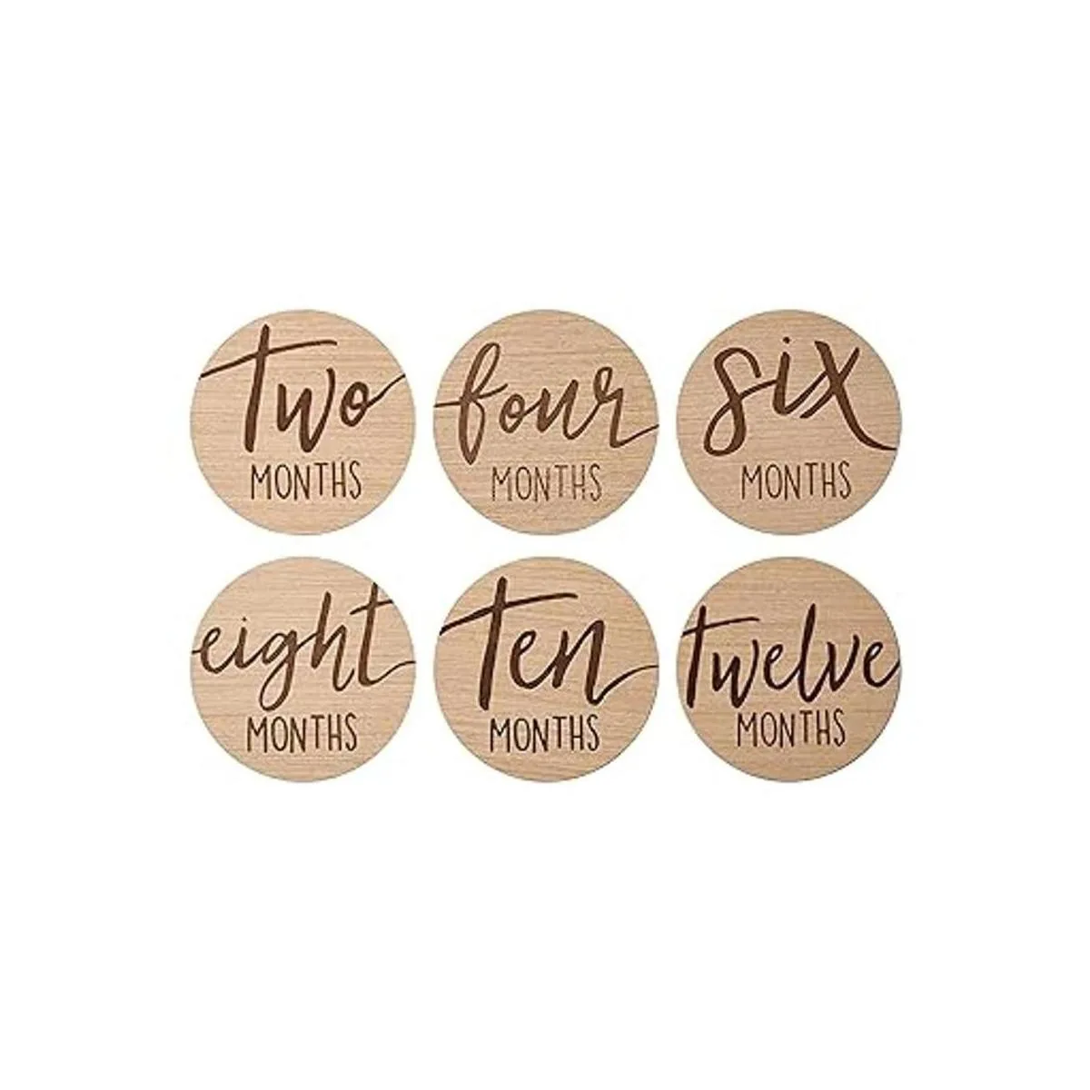 Incluye seis accesorios circulares de madera de doble cara para capturar el primer año del bebé y el hito mensual