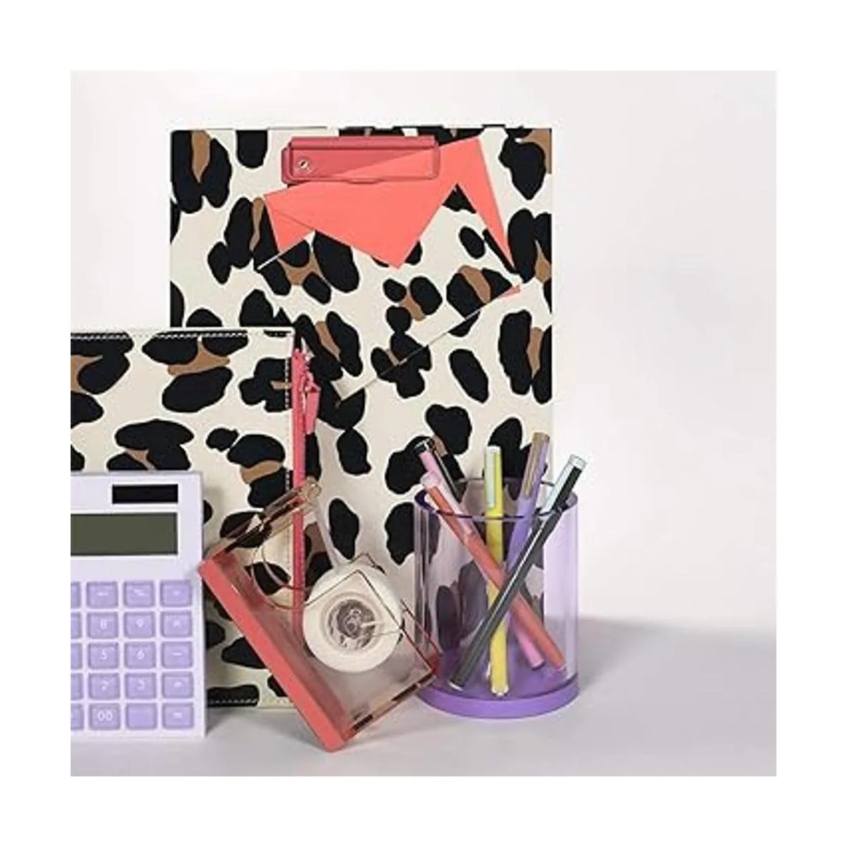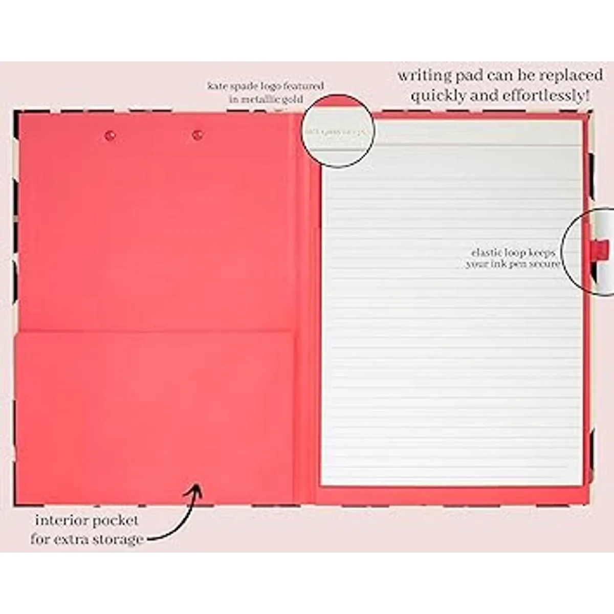 Kate Spade New York Folio para portapapeles con estampado de leopardo con clip de perfil bajo, padfolio profesional incluye bloc de notas forradas, bucle para bolígrafo y bolsillo, felino bosque