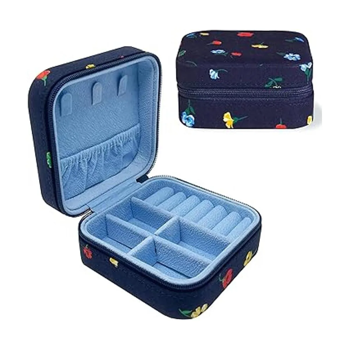 Kate Spade New York Joyero de viaje floral azul marino, pequeño joyero para organizar anillos, collares, pendientes, lanzamiento de jardín