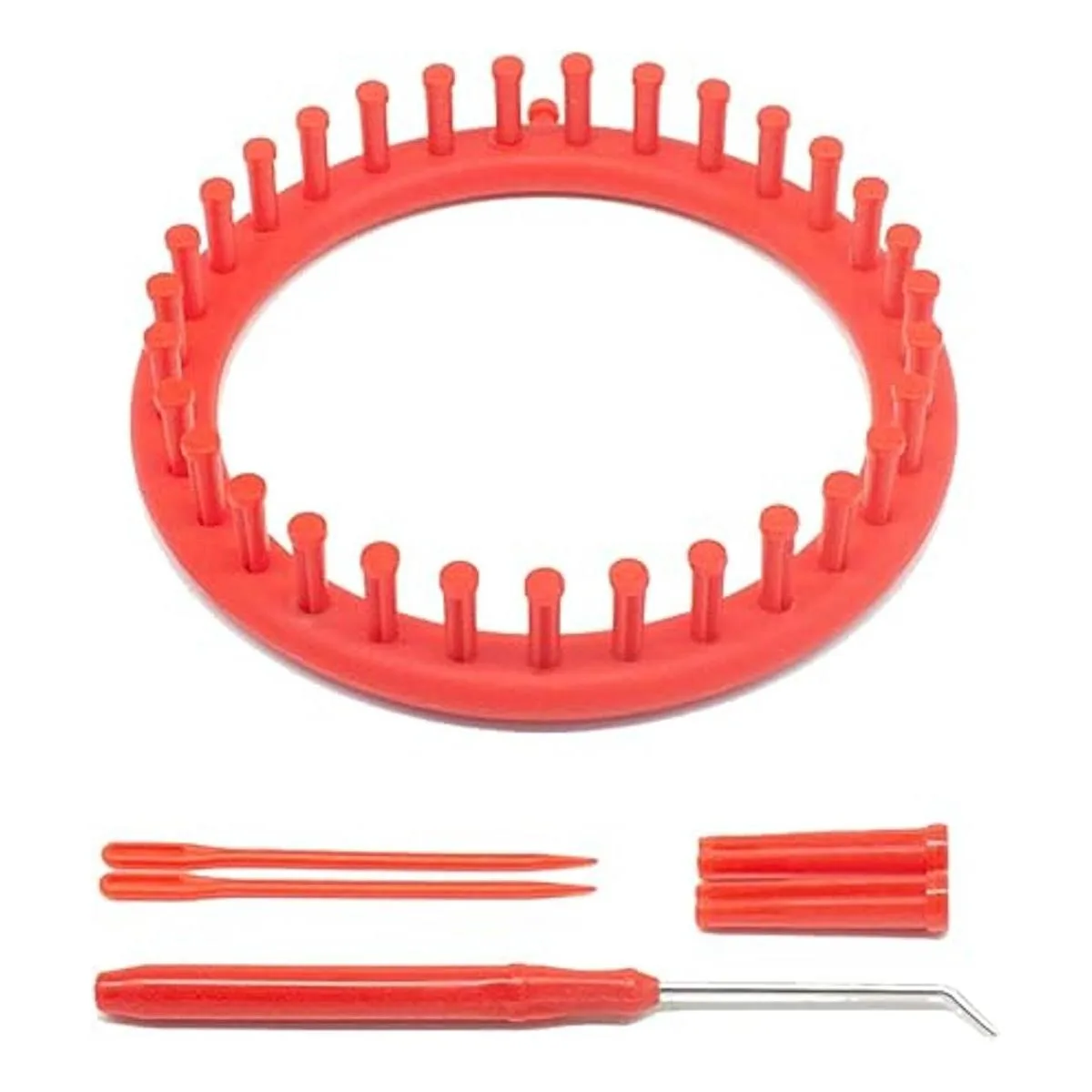 Katech Juego de telares de punto redondos, 7.5 in de diámetro, tejido de plástico rojo, bufanda, sombreros, herramientas para hacer manualidades, ganchillo hecho a mano, kit de manualidades con un gancho de ganchillo y aguja para los amantes de tejer rojo