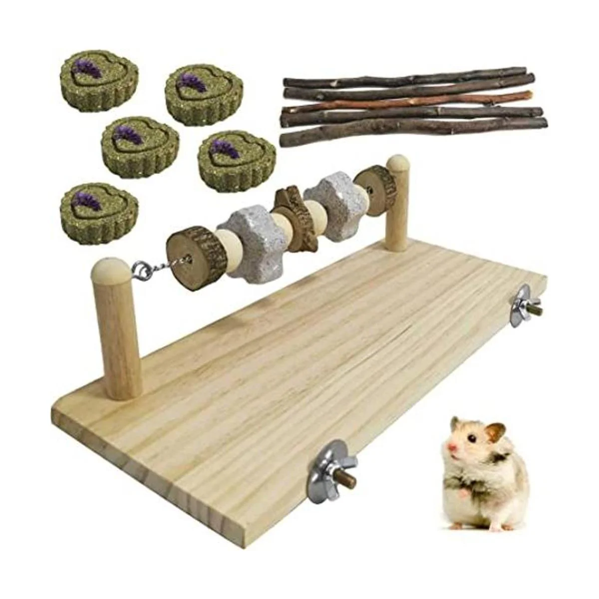 Kathson Hamster Madera Ledge Plataforma Masticar Juguetes Chinchilla Jaula Accesorios Guinea Pig Grinding Lava Bloques Molar Mascotas Pasto Natural Manzana Palos para Ratones Rata Gerbo Enano Hámster 11 Unidades