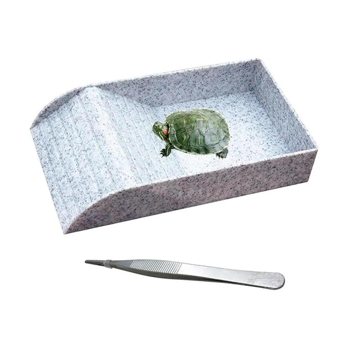 Kathson Plato de alimentación de tortuga con rampa y plataforma de plástico para tortugas y agua, también apto para baño con ranas asadas, lagartijas anfibios