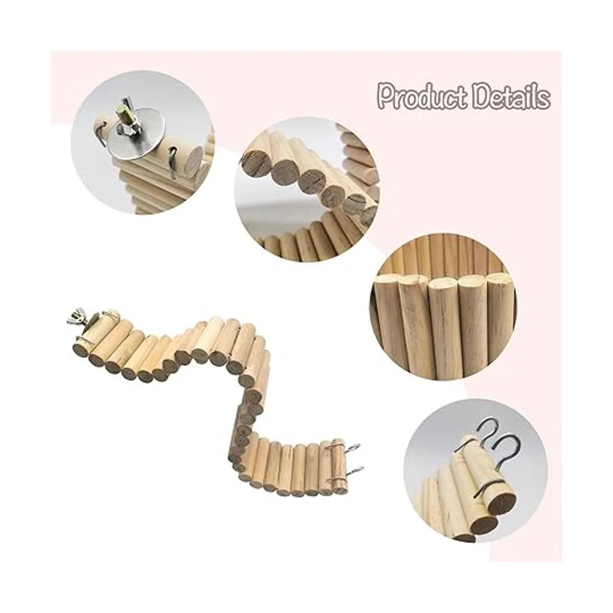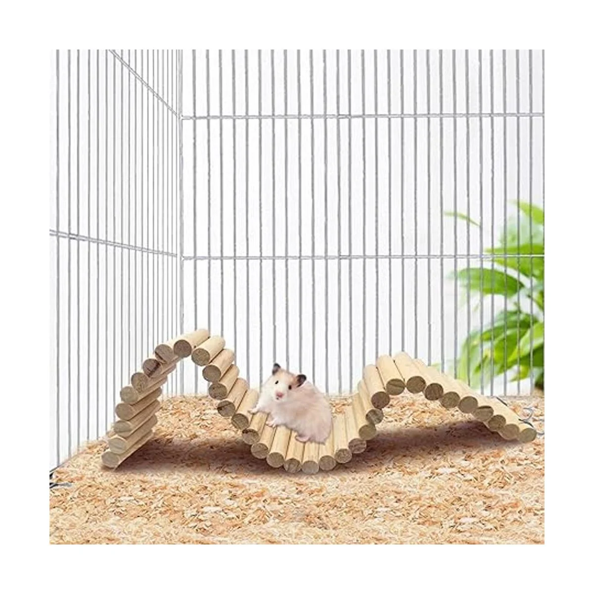 Características del producto: nuestra escalera de madera para hámster está hecha de palos de madera natural, encordada y formada por 2 cables de metal flexibles. Es flexible y toma formas fácilmente como tus desees, como una escalera de escalada, ropa de cama o separador de área de arena. Uso en la jaula vertical, horizontal o curvada. Puedes ver a la mascota corriendo, lo que la hace muy feliz.