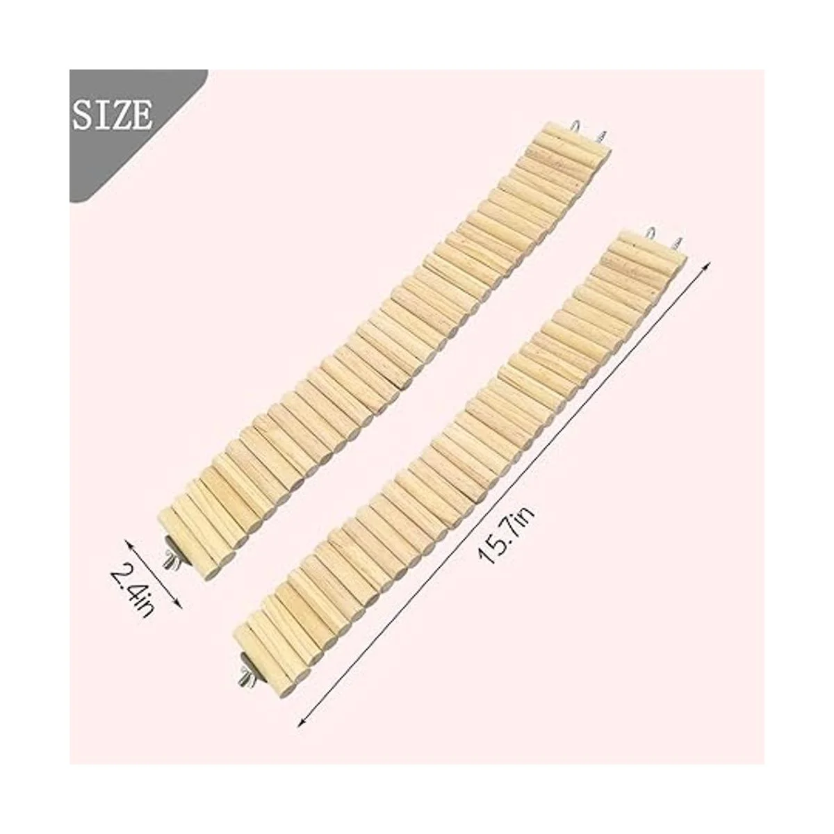 Tamaño de especificación: el paquete incluye 2 puentes de escalera y 4 bolas de juego de animales pequeños. Tamaño de la escalera de madera: 15.7 x 2.4 in. Además, es fácil de instalar, puedes conectar rápidamente los cierres, fácil de conectar la jaula. Adecuado para conejos, hurones, cobayas, chinchilla y otros animales pequeños.