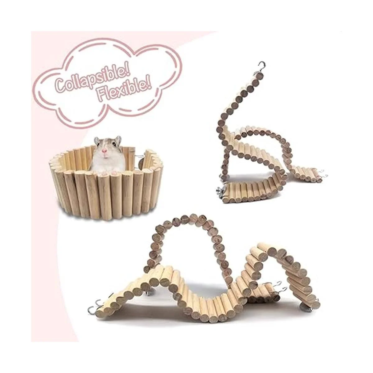 Valor para mascotas: el juguete de puente de ratas flexible se puede aplicar como un lugar para que las mascotas jueguen o como un palo molar de mascota y animar a la mascota a explorar y hacer ejercicio. Es un divertido tema de hábitats natural, estimular a los hámsters para hacer ejercicio y promover sus habilidades de coordinación y equilibrio al caminar, satisfacer el deseo de escalar y explorar. Nuestro puente de hámster puede traer horas de diversión. hámsters para buscar Comida.